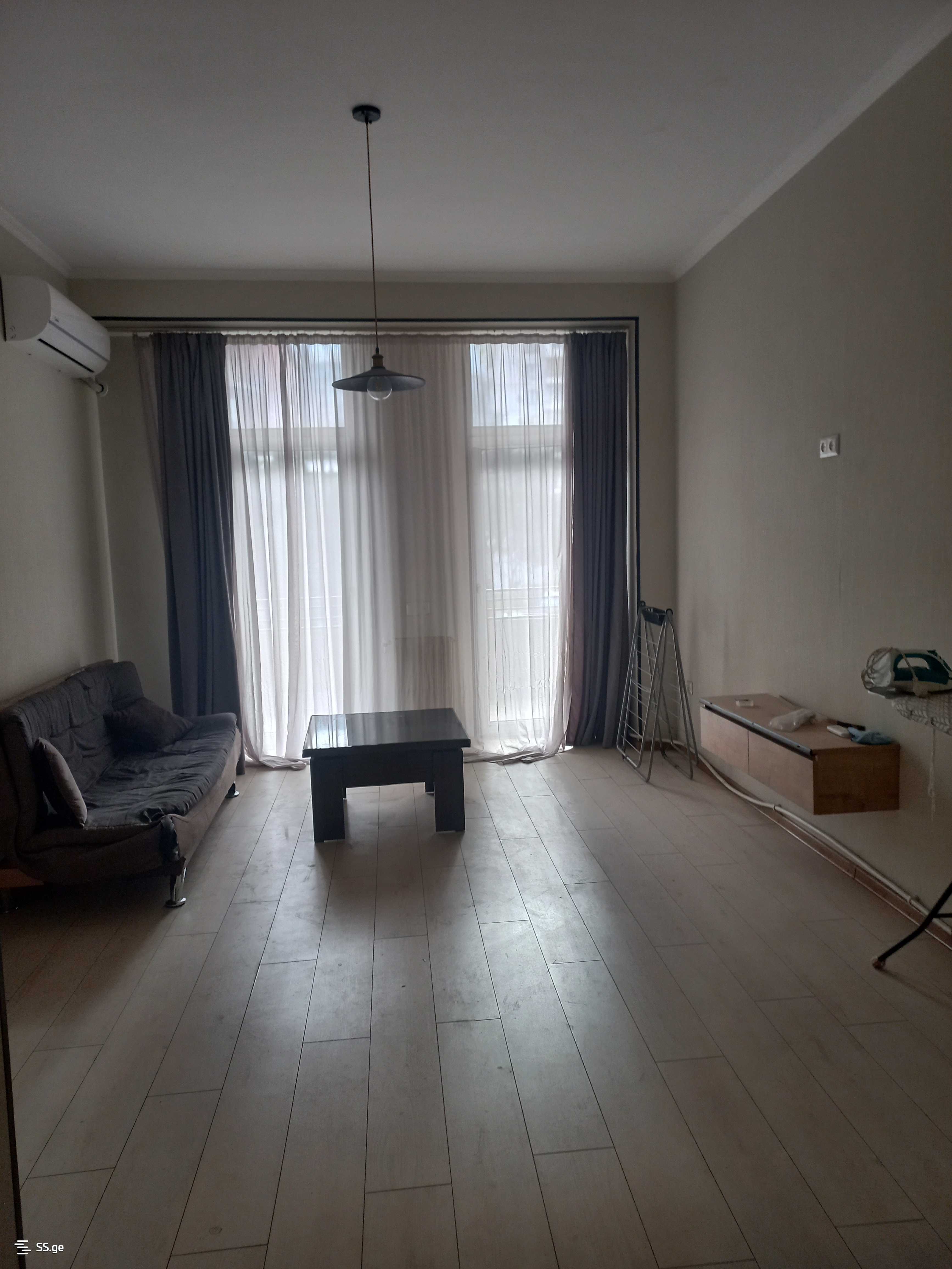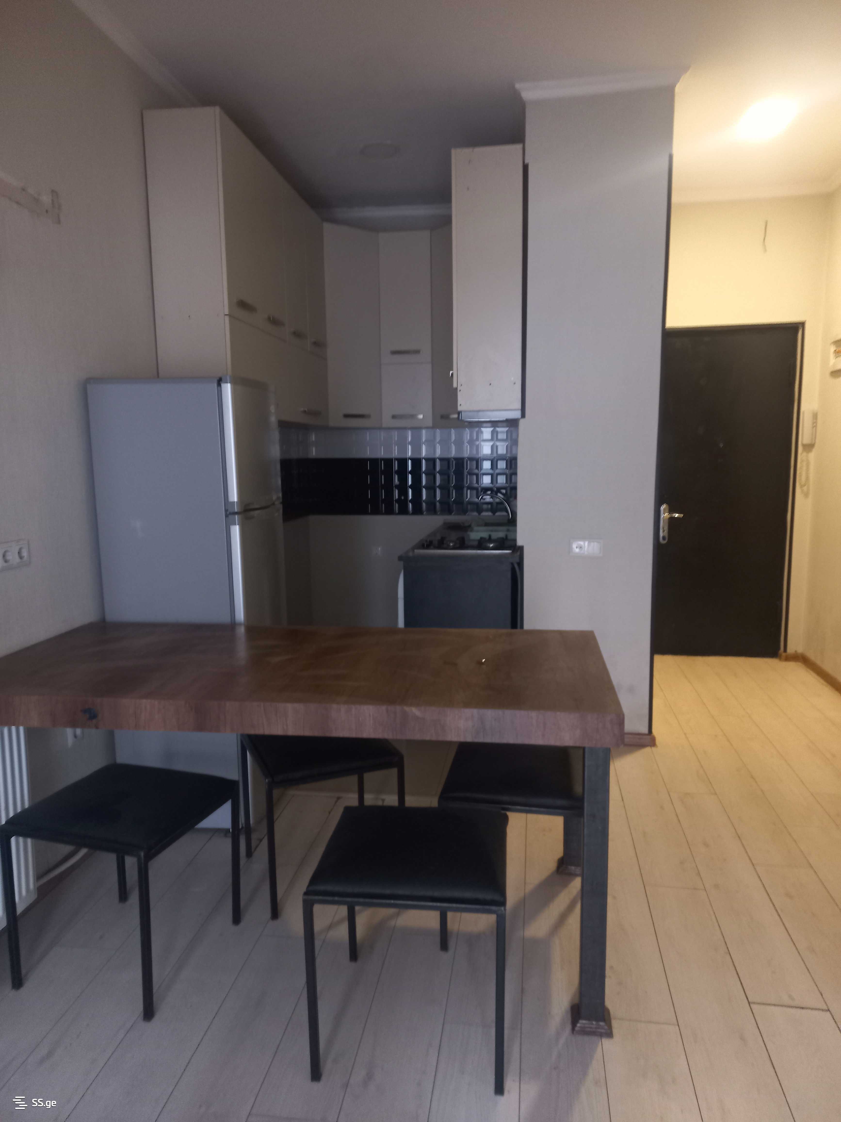 2-room apartment for rent in Bagebi, with all necessary furniture and appliances. The apartment has central heating and air conditioning. There is a bus stop, school, and network markets nearby. I am the owner.
