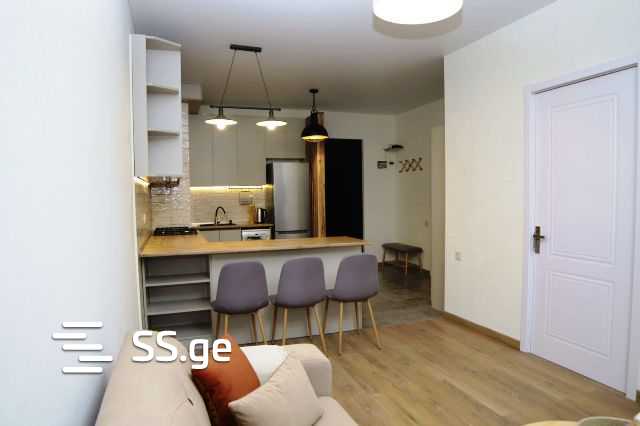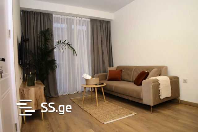 2-roomed 65 sq.m. apartment for rent in Bagebi, on Tskneti highway, in new building, on the 6th floor, new renovated, with central heating, air-conditioner, furniture, technique, internet, veranda, Tel: 574022560, 597032299 Giorgi