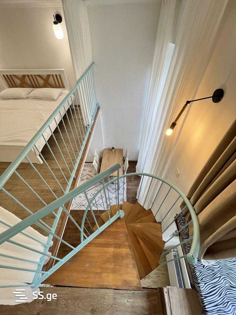 House for rent in an Italian courtyard. The house has a mezzanine, ceiling height 4.50 m. With central heating and necessary appliances (completely new), it has a large yard, parking space and a 4 sq m basement. The house has entrances from 2 sides, from Agmashenebeli Avenue and Uznadze Street (300 meters from Marjanishvili Theater)