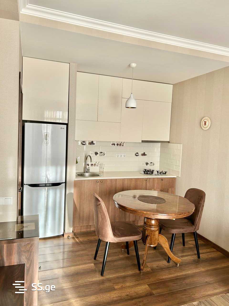 For rent: a 2-room apartment in Chughureti, on Tsotne Dadiani Street, behind the Karvali, in a newly built building, with a garage and an isolated bedroom.