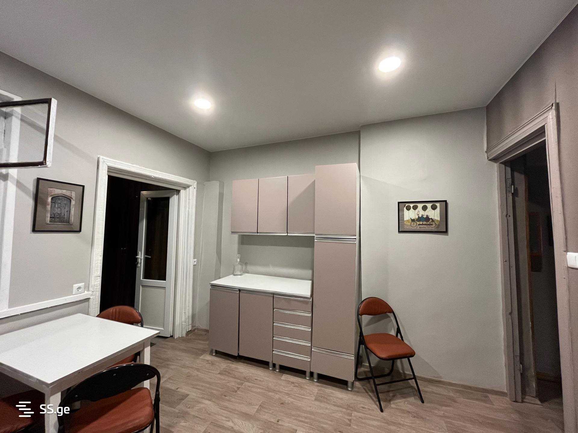 The apartment is located near the center. The apartment has old renovations, but the bathroom is newly renovated. It has a large balcony of 30 square meters with greenery.
