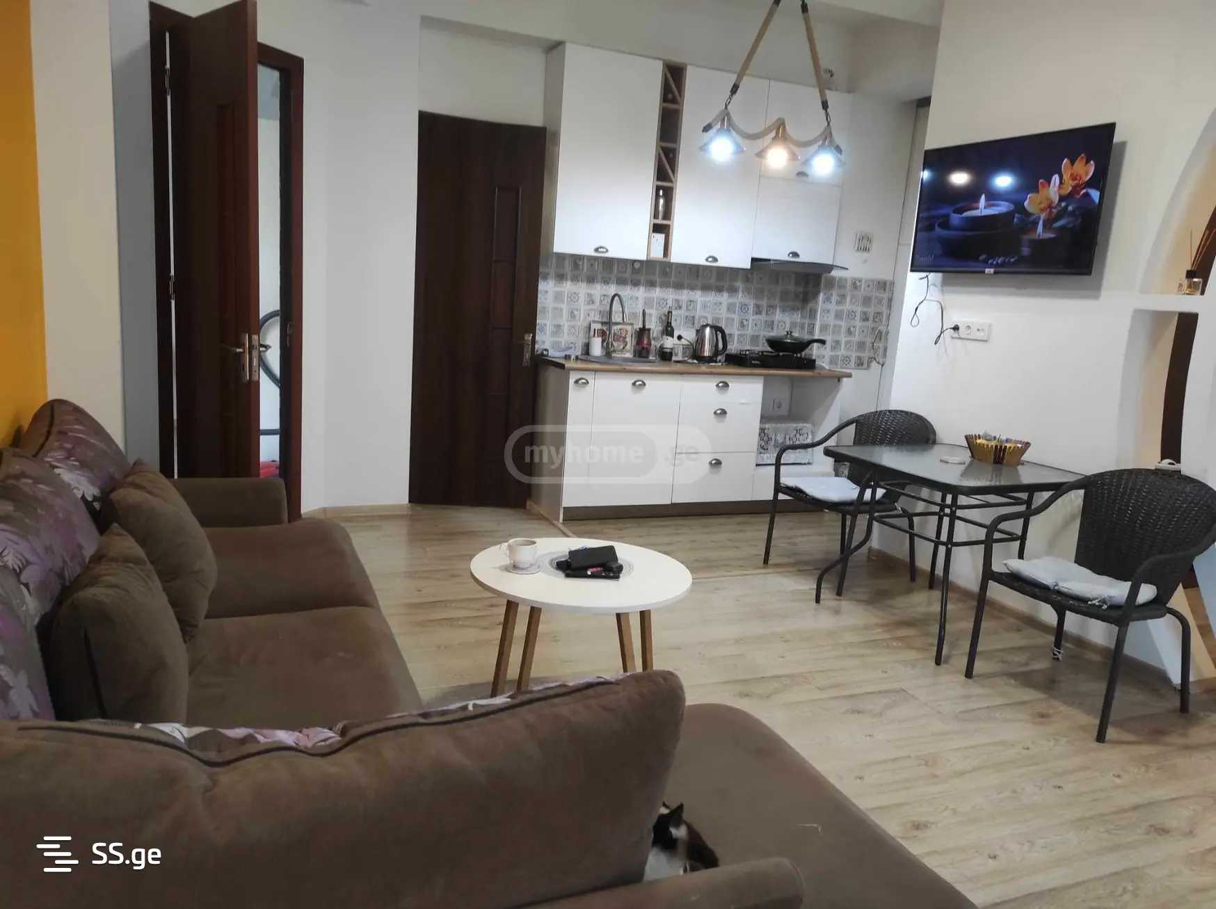 An apartment is for rent on Giorgi Brtskinvales Street, with well-maintained bright living and sleeping areas, and balconies.