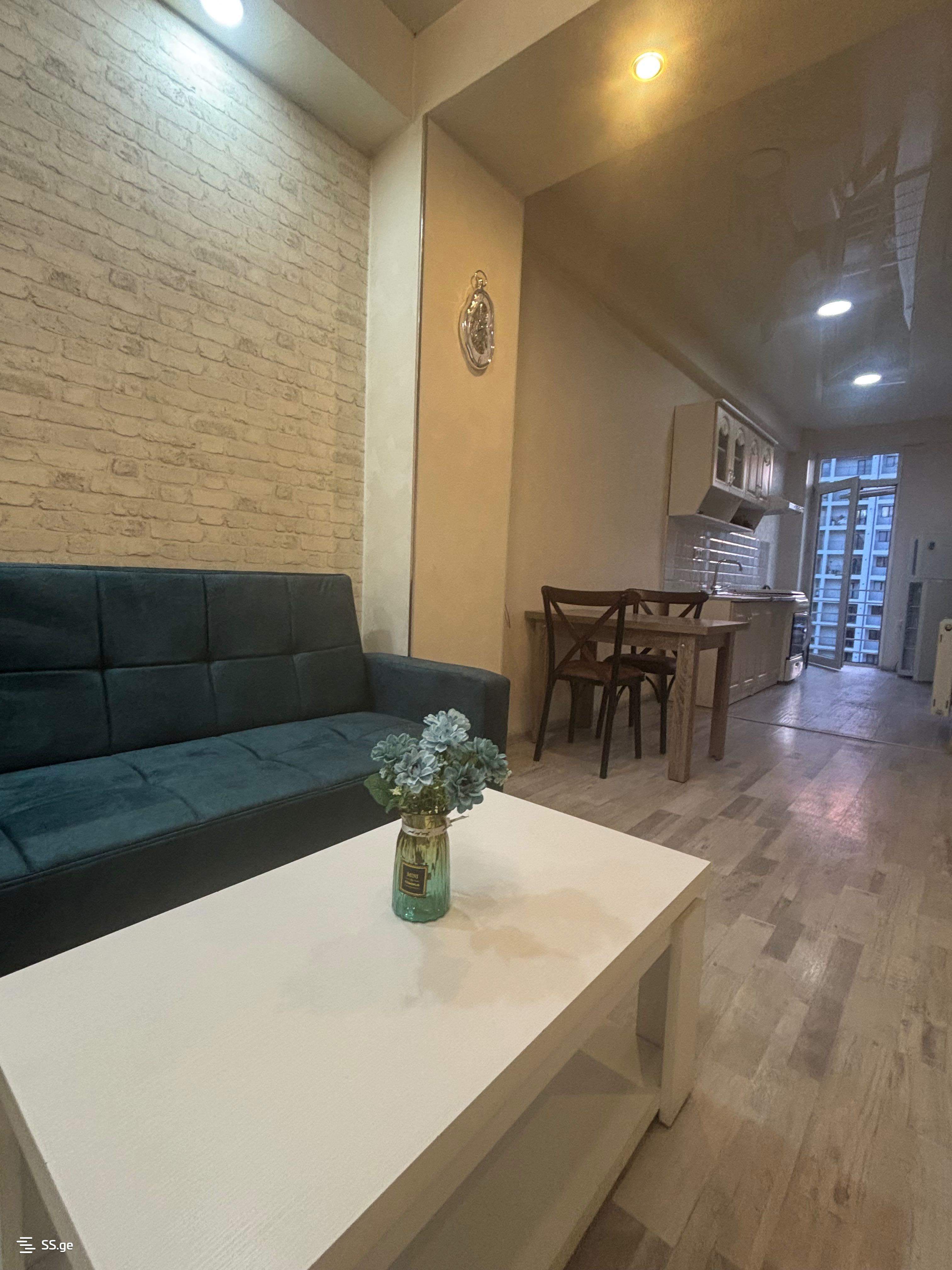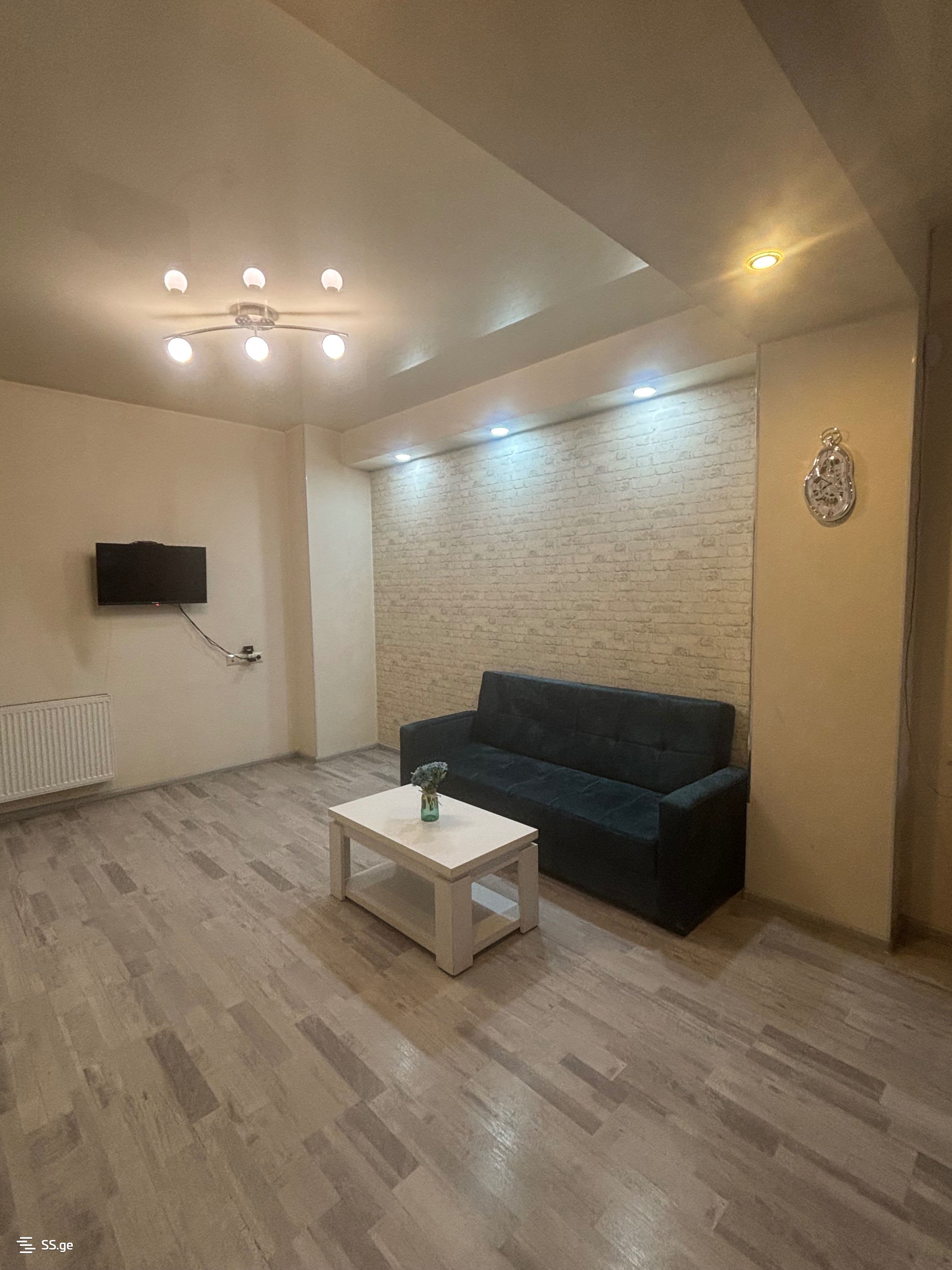 A ready, clean, and tidy apartment is for rent in Didgomi, across from Gudvilis, behind the furniture house Panorama. It has a well-maintained yard, and there are many shops, a sports field, and a bus stop nearby. The furniture is completely new. Animals are categorically not allowed, renting is only for tidy tenants.