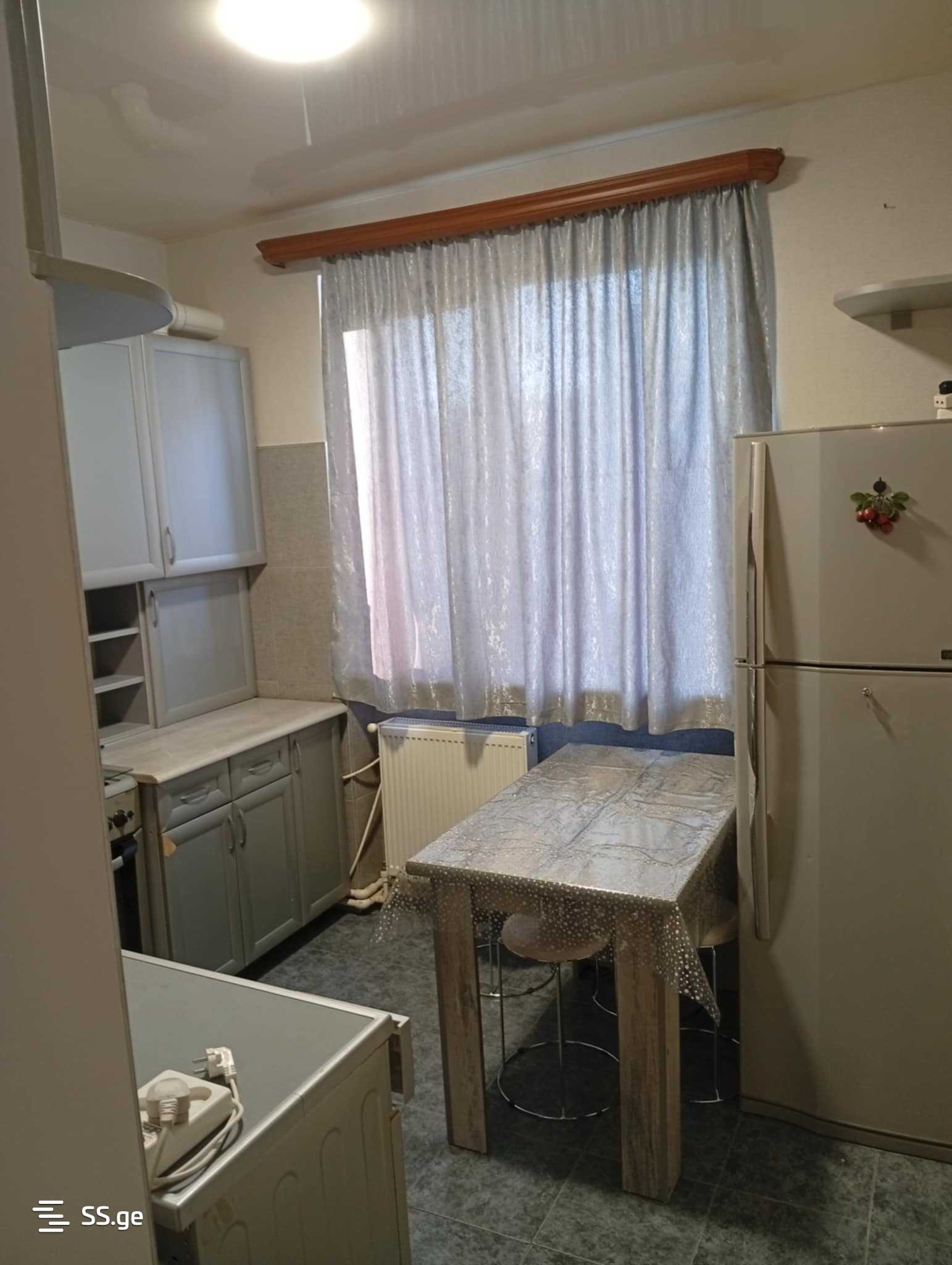For rent in Didgomu, third micro 31. In a quiet place, close to the round two steps. The apartment has central heating and all necessary appliances. Price 1000 lari.