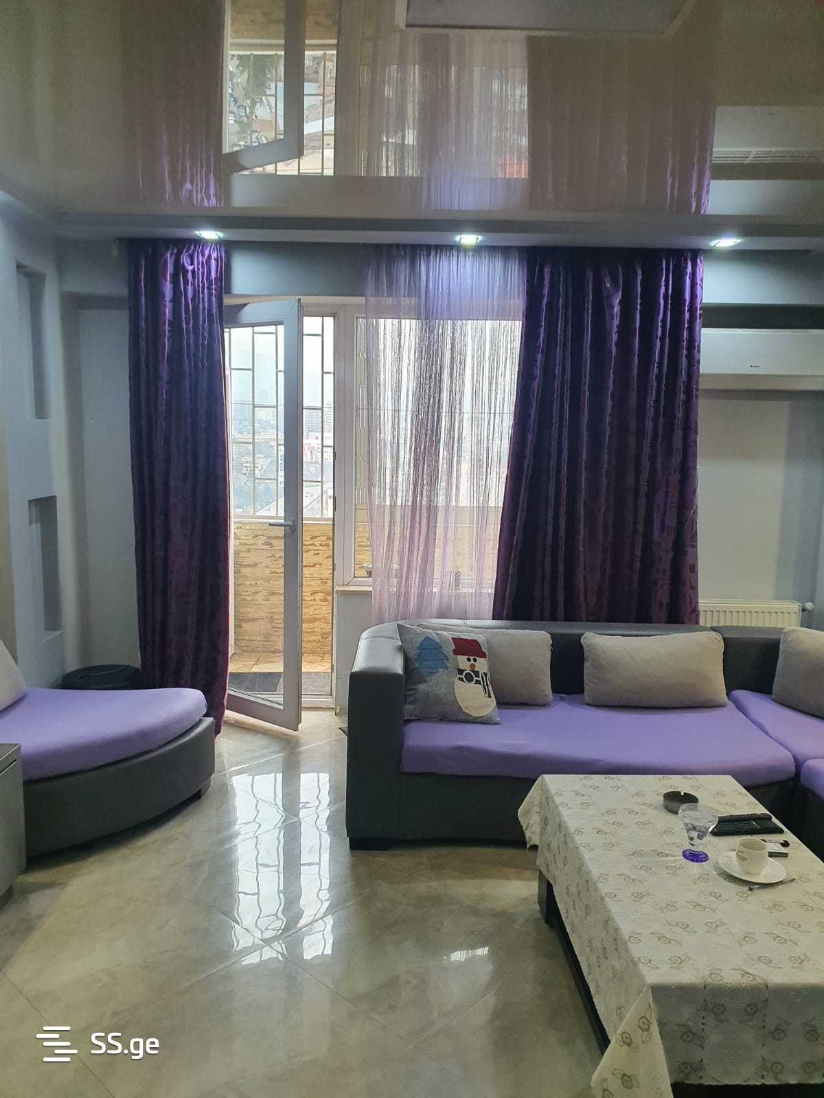 A 2-room apartment is for rent in a newly built building in front of the Tetritskaro metro.