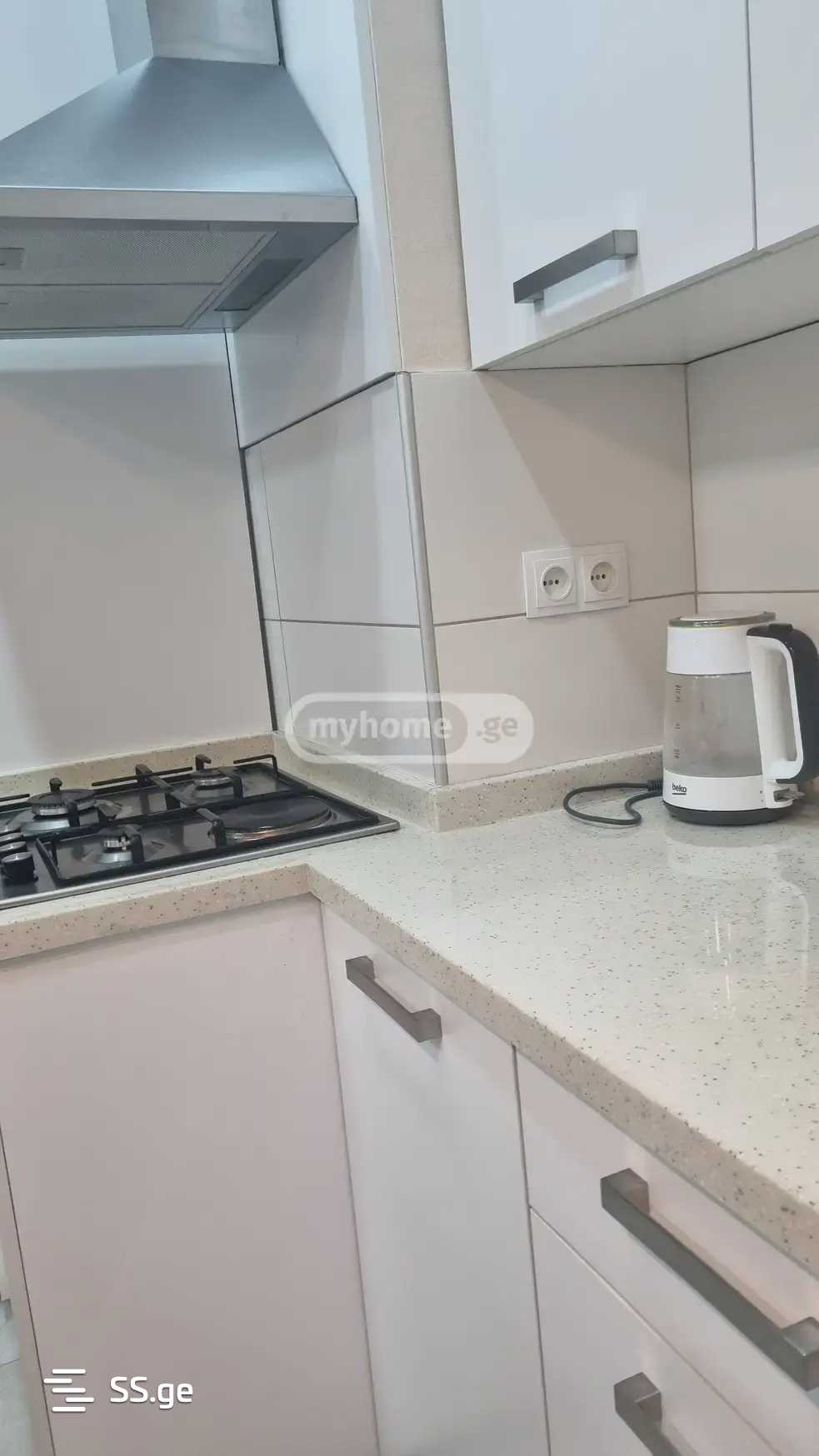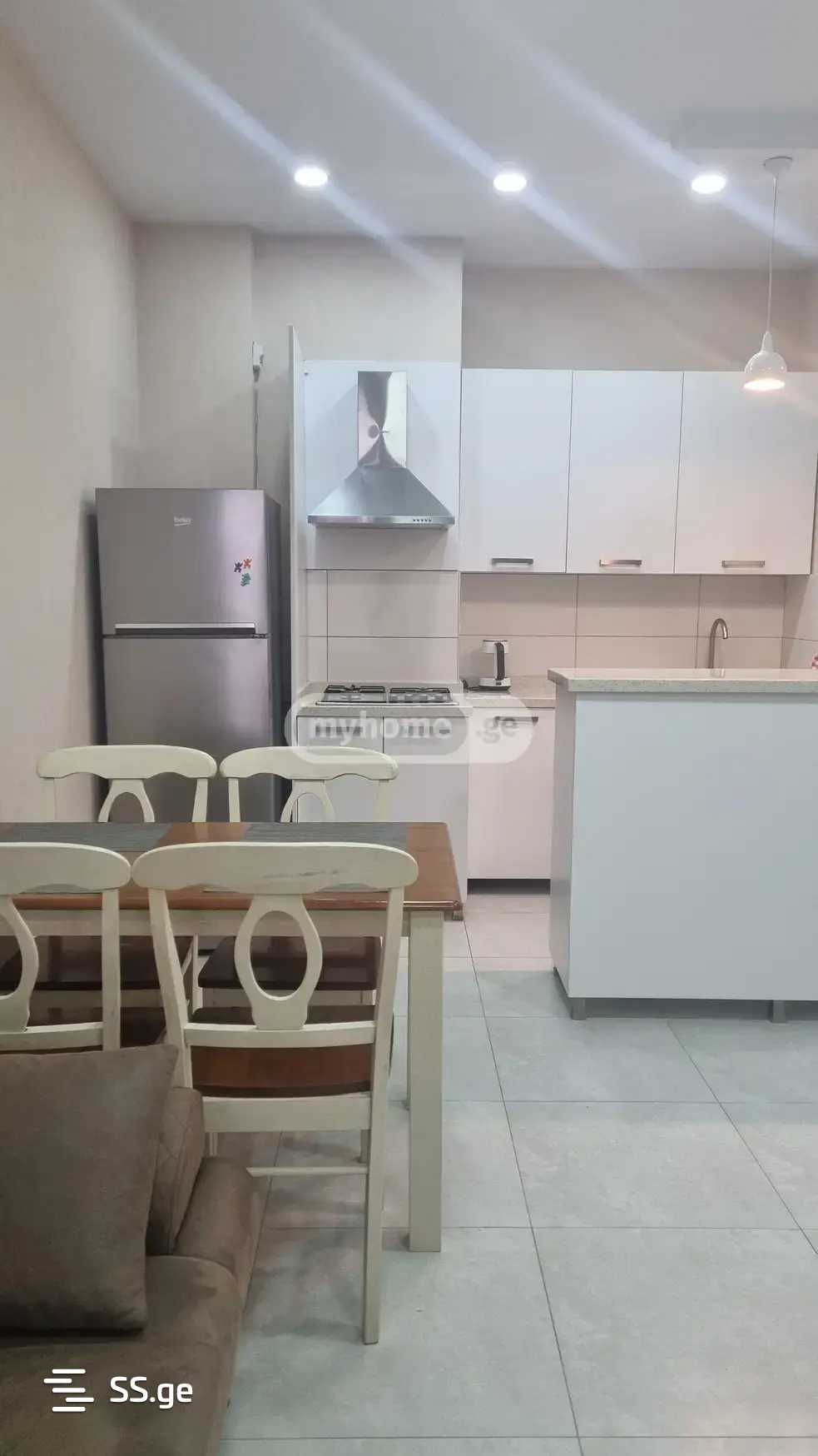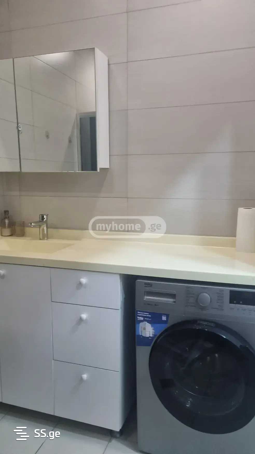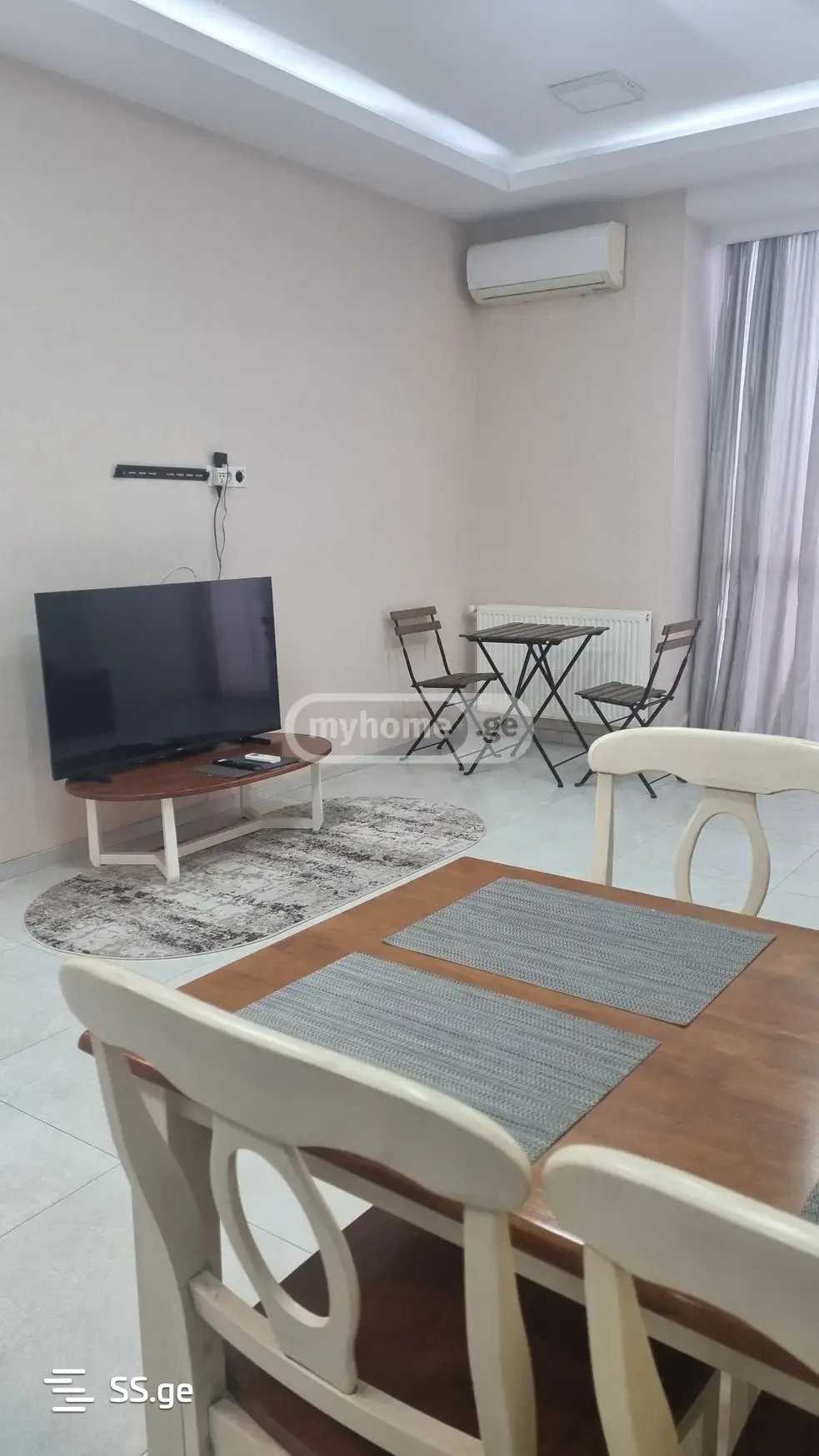 The apartment is located near the Tserevan metro station, in a newly built building, by the seaside. It comes with furniture and appliances. There are 2 air conditioners. The entrance is well-maintained, there is a surveillance camera, the yard is gated with a barrier, and the building's entrance is coded. It has paid parking.