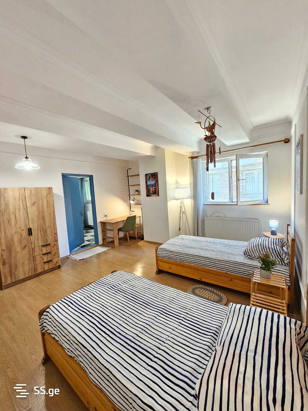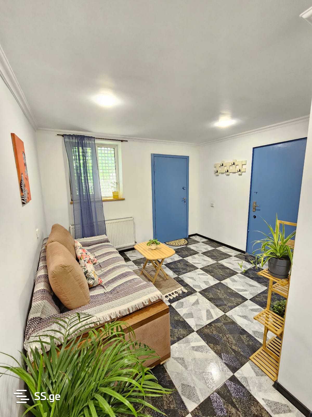 For rent: a newly renovated private style house, accessible from Akaki Tsereteli Avenue and Spiridon Kedia Street. The apartment is cozy and comfortable, has its own yard, all rooms are bright, and it is equipped with a central heating system. It is available for long-term rent, with a 2-month advance payment.