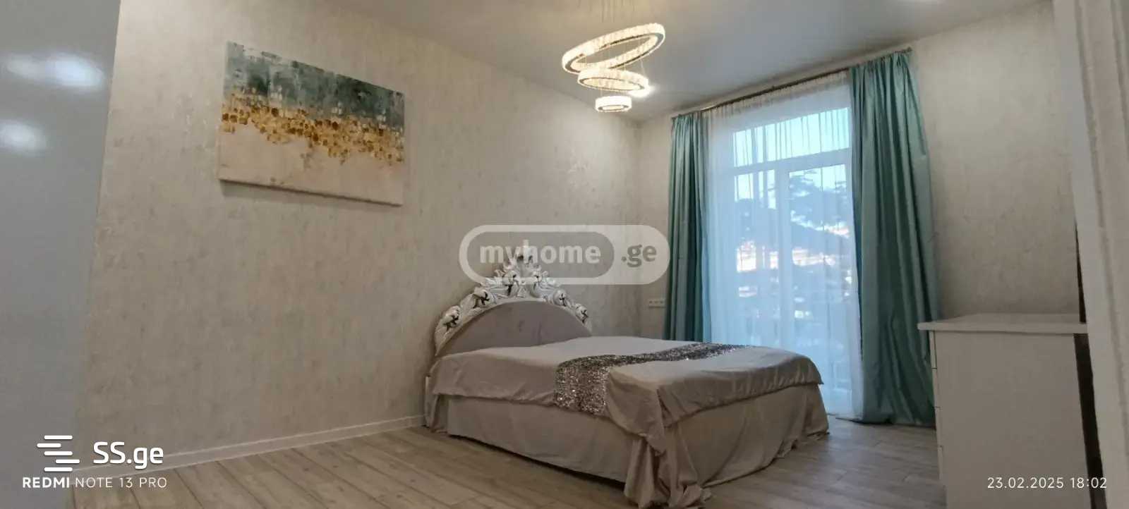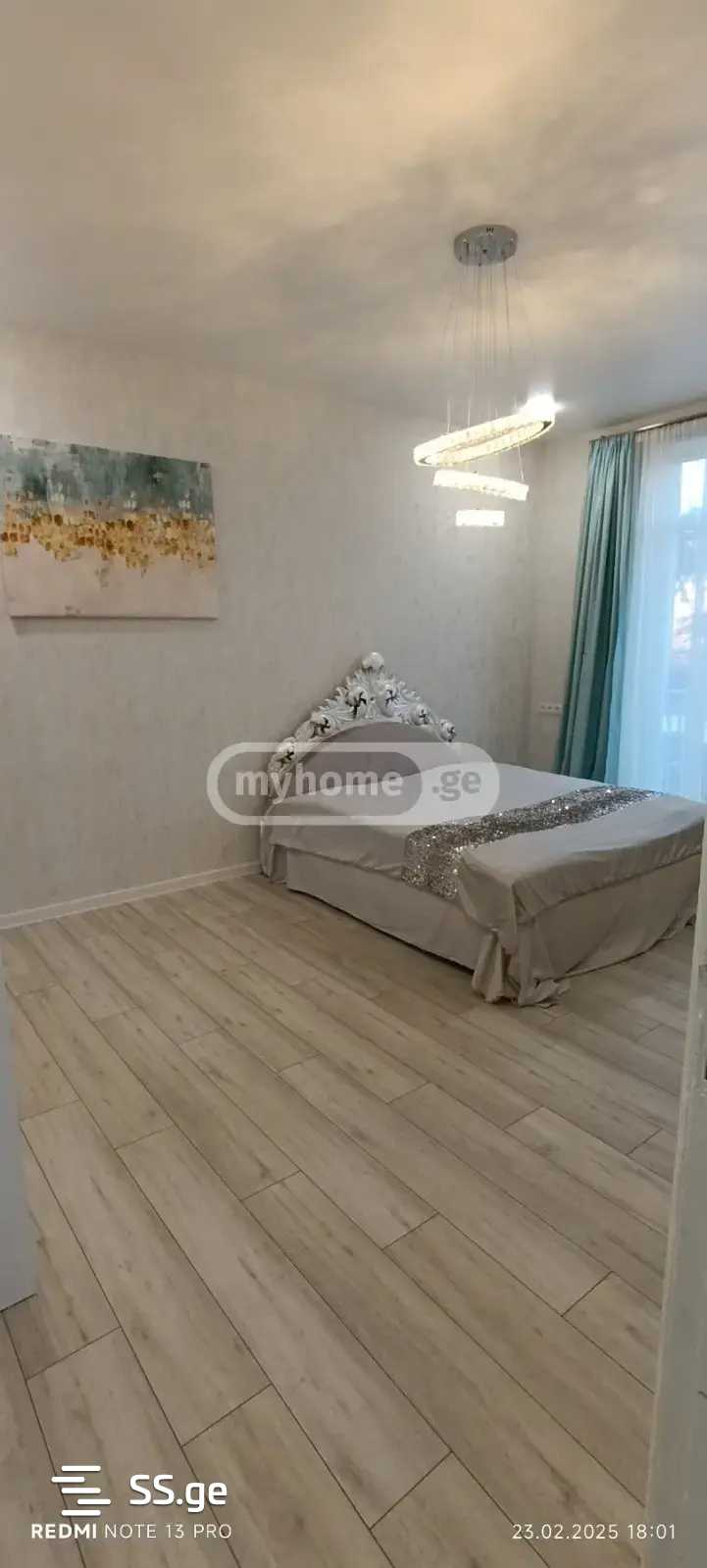 An apartment is for rent in a newly built, non-standard project. The apartment is located on the fourth floor of a four-story building and covers an area of 75 sq.m. The layout includes two rooms, including one bedroom and a balcony, which adds extra comfort. The apartment has been newly renovated and no one has lived in it. The space is bright and cozy, creating an ideal environment for relaxation and daily life. The apartment, meeting modern standards, provides peace and comfort for those who value new surroundings and quality.