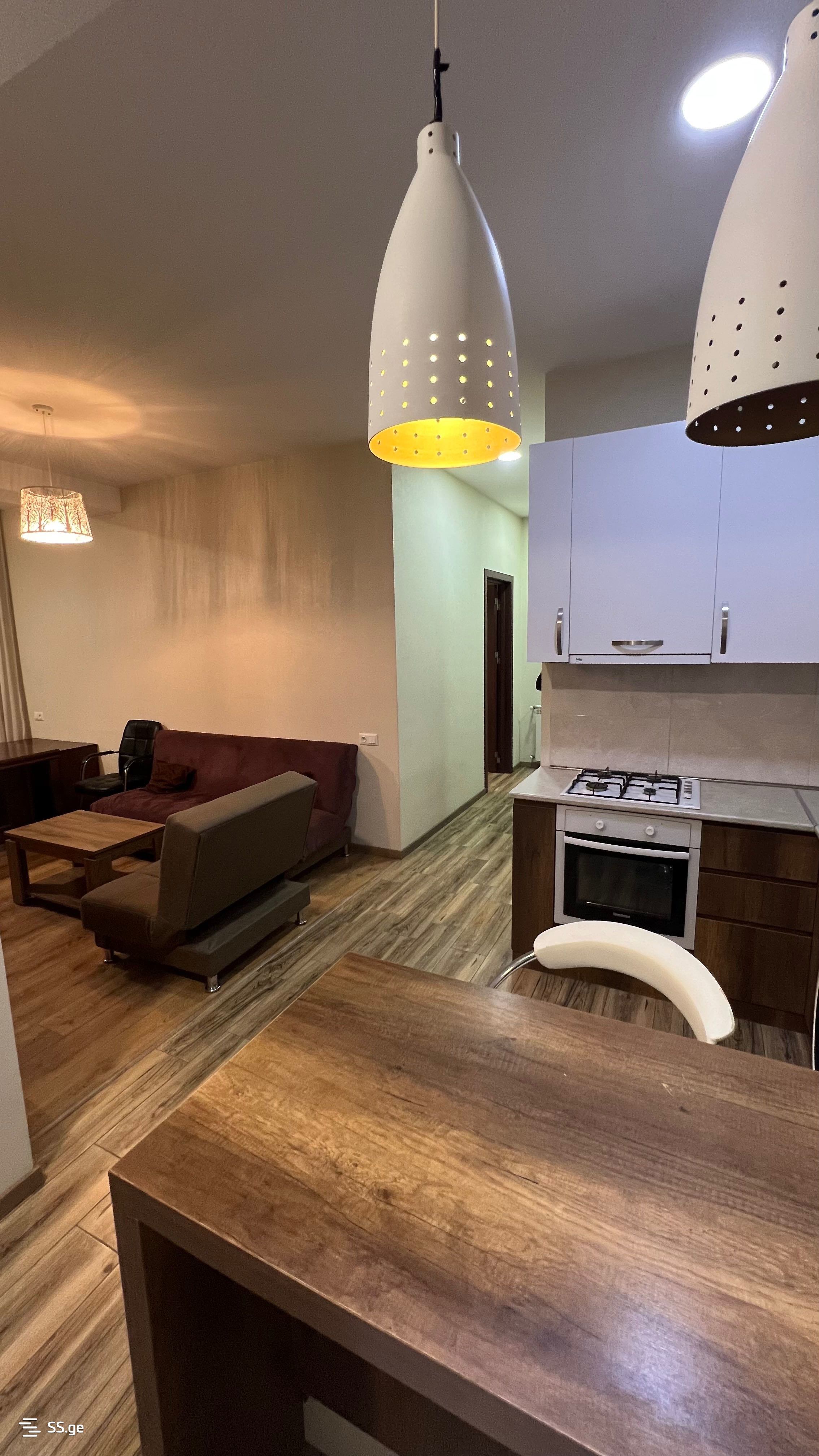 For rent is a 2-room furnished apartment on Agmashenebeli Avenue near Beliuks, the apartment has 1 bedroom, a studio-type living room, a balcony, and is equipped with all necessary furniture and appliances, without a broker.