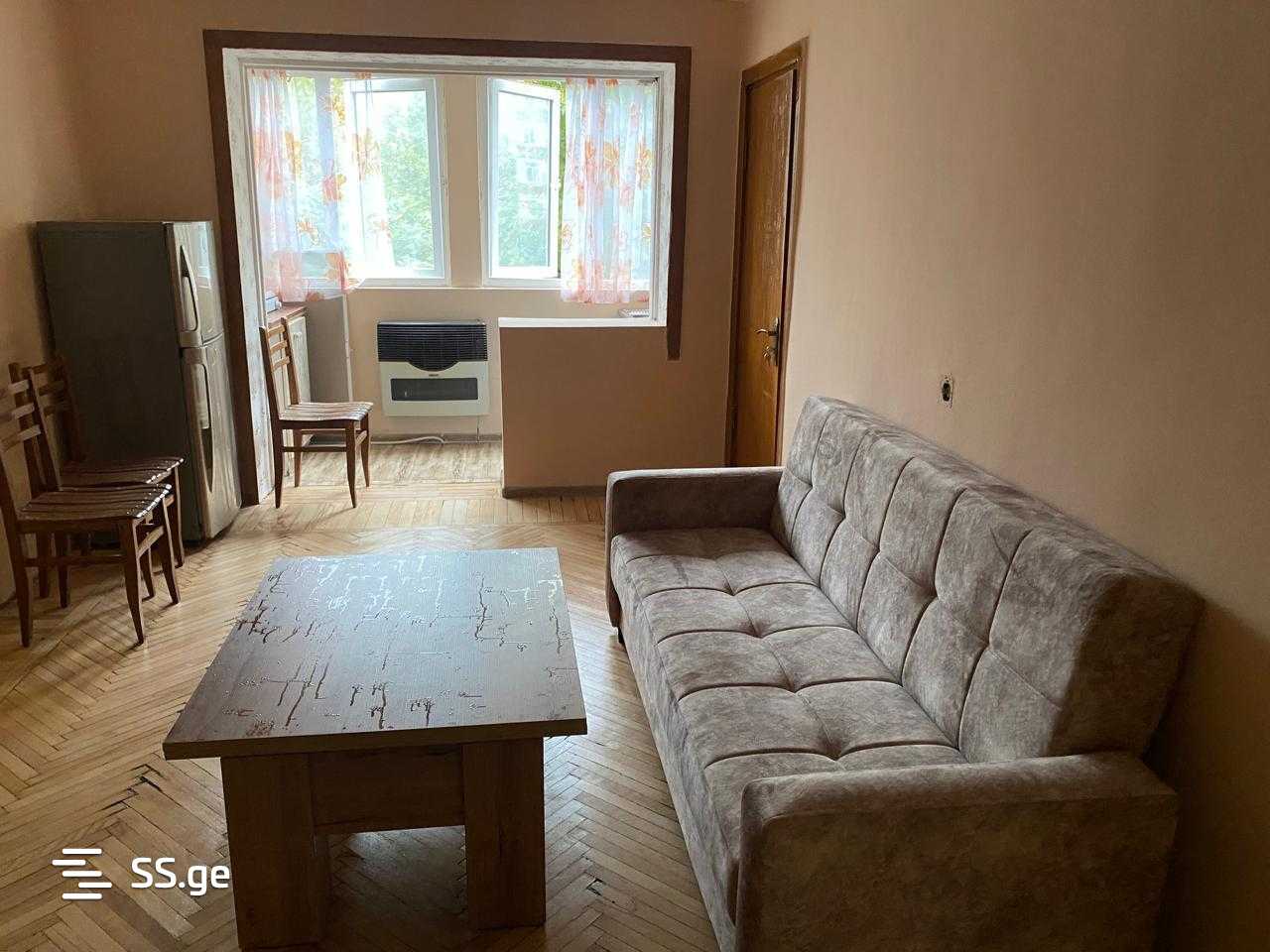 An apartment is for rent in the I quarter of the Dighomi massif, in a calm and quiet place.