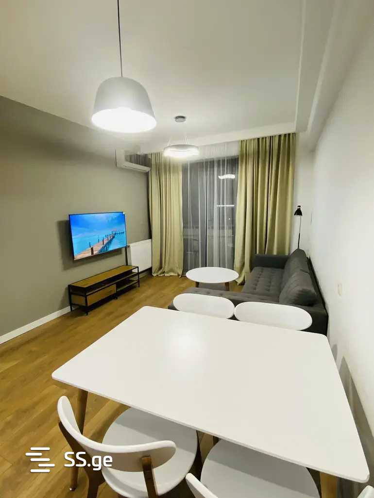 For rent is a two-room, newly renovated apartment, equipped with all necessary furniture and appliances (refrigerator, television, dishwasher, air conditioner, washing machine, gas stove). The apartment has a wonderful view!