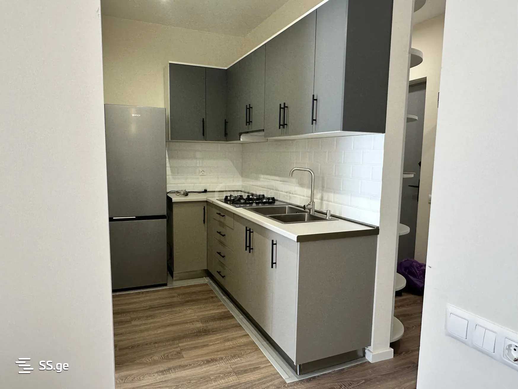 An apartment with a terrace is for rent in the Saburtalo complex, near the Metro State University. It is uninhabited and newly renovated.