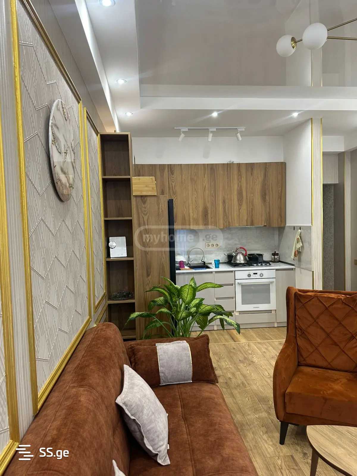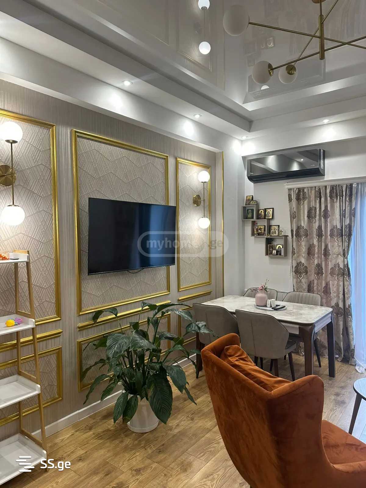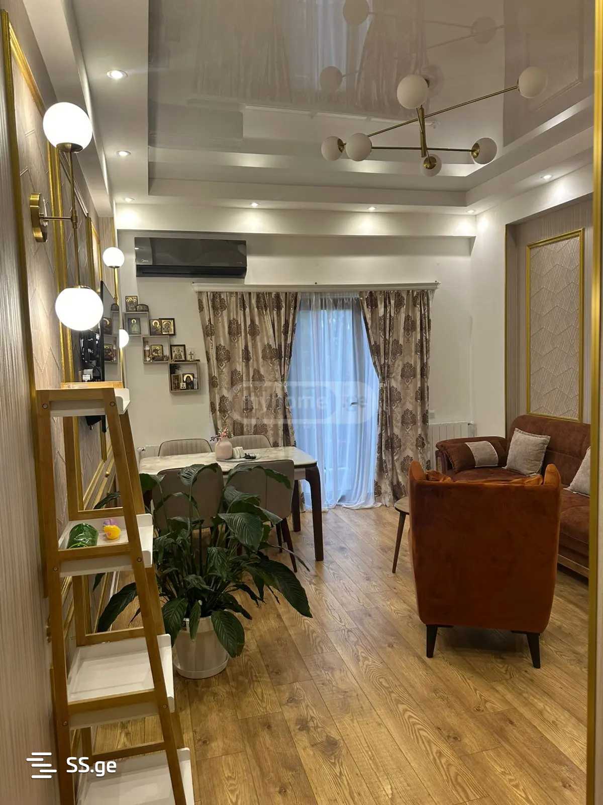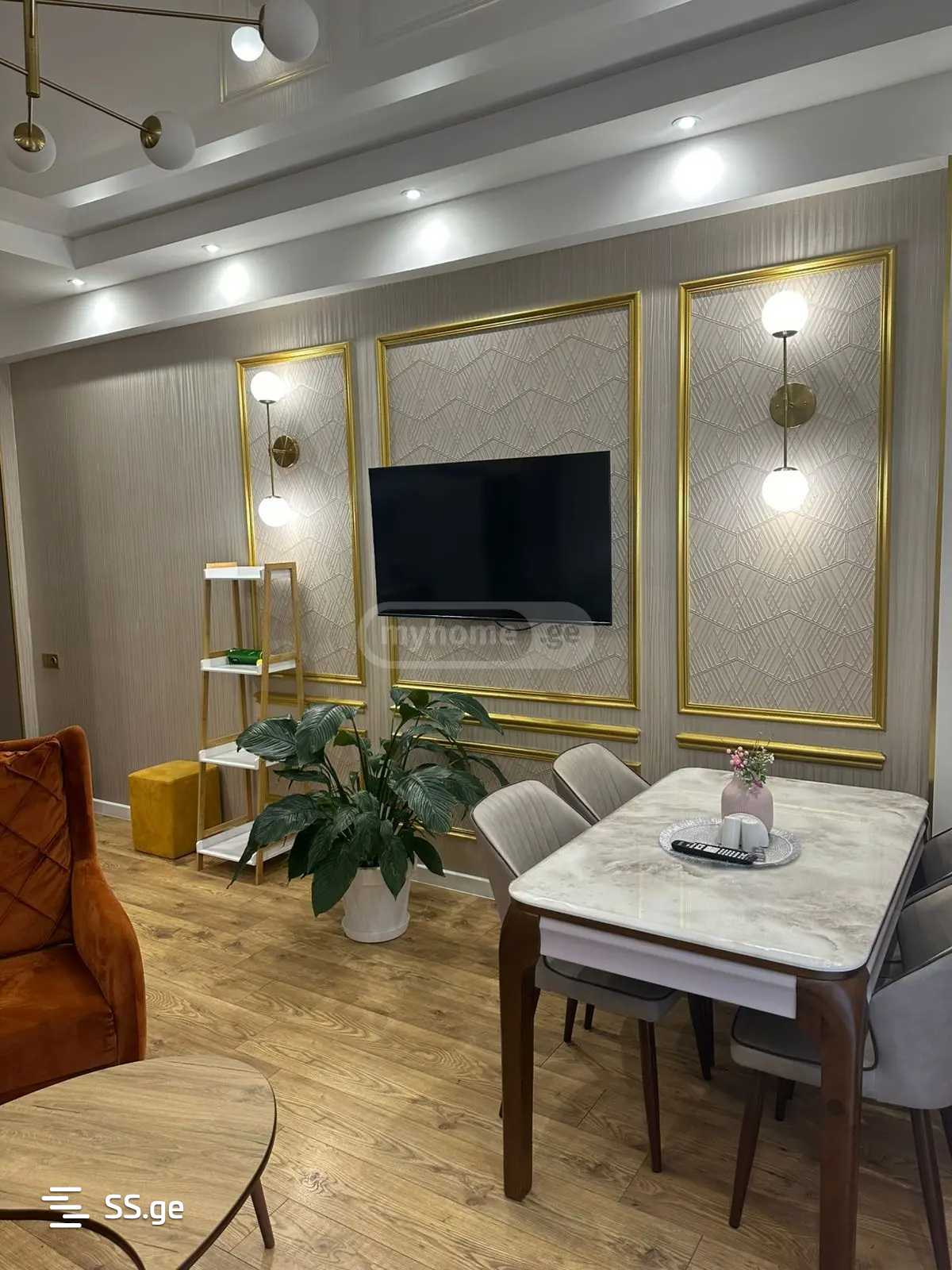 The apartment is located on Bochorishvili Street in Gldani, has a yard parking, and is a newly renovated apartment in a newly constructed building. The apartment is equipped with all kinds of appliances and furniture. Price is 500$