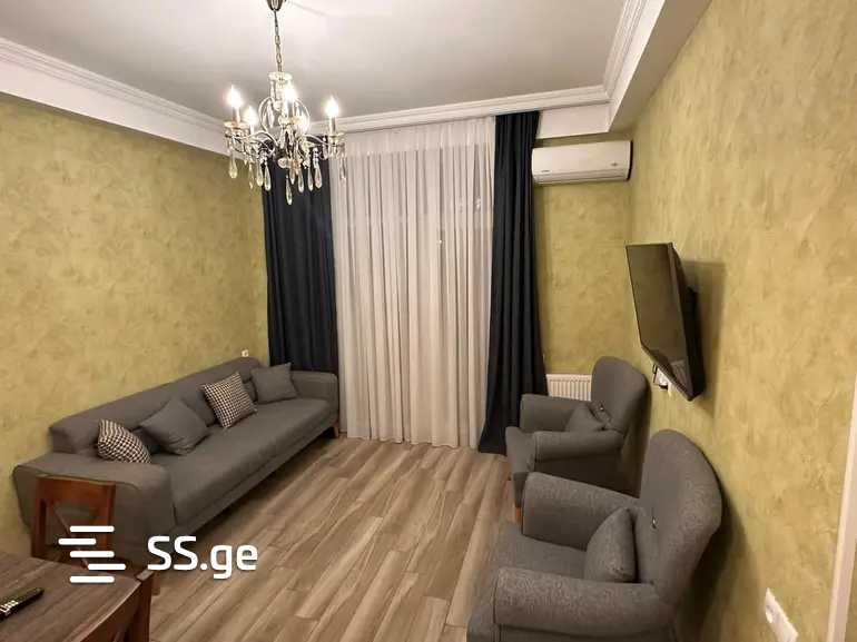 For rent: a newly furnished two-room apartment near the Akhmteli metro station, with central heating, air conditioning, and all necessary appliances and furniture. 2 months advance payment.