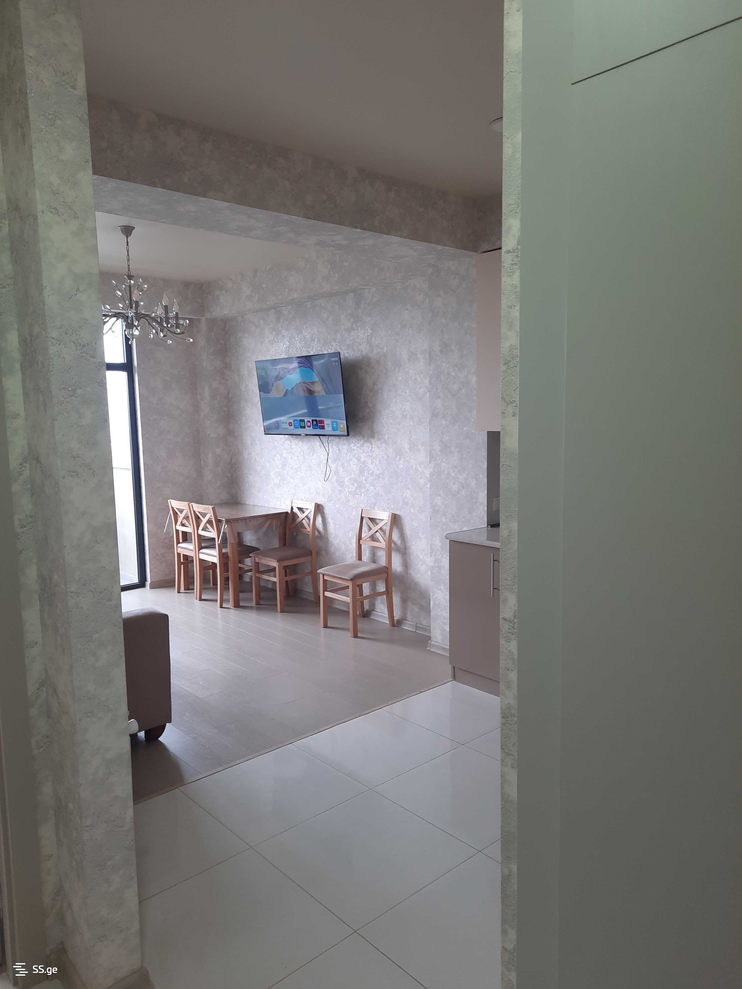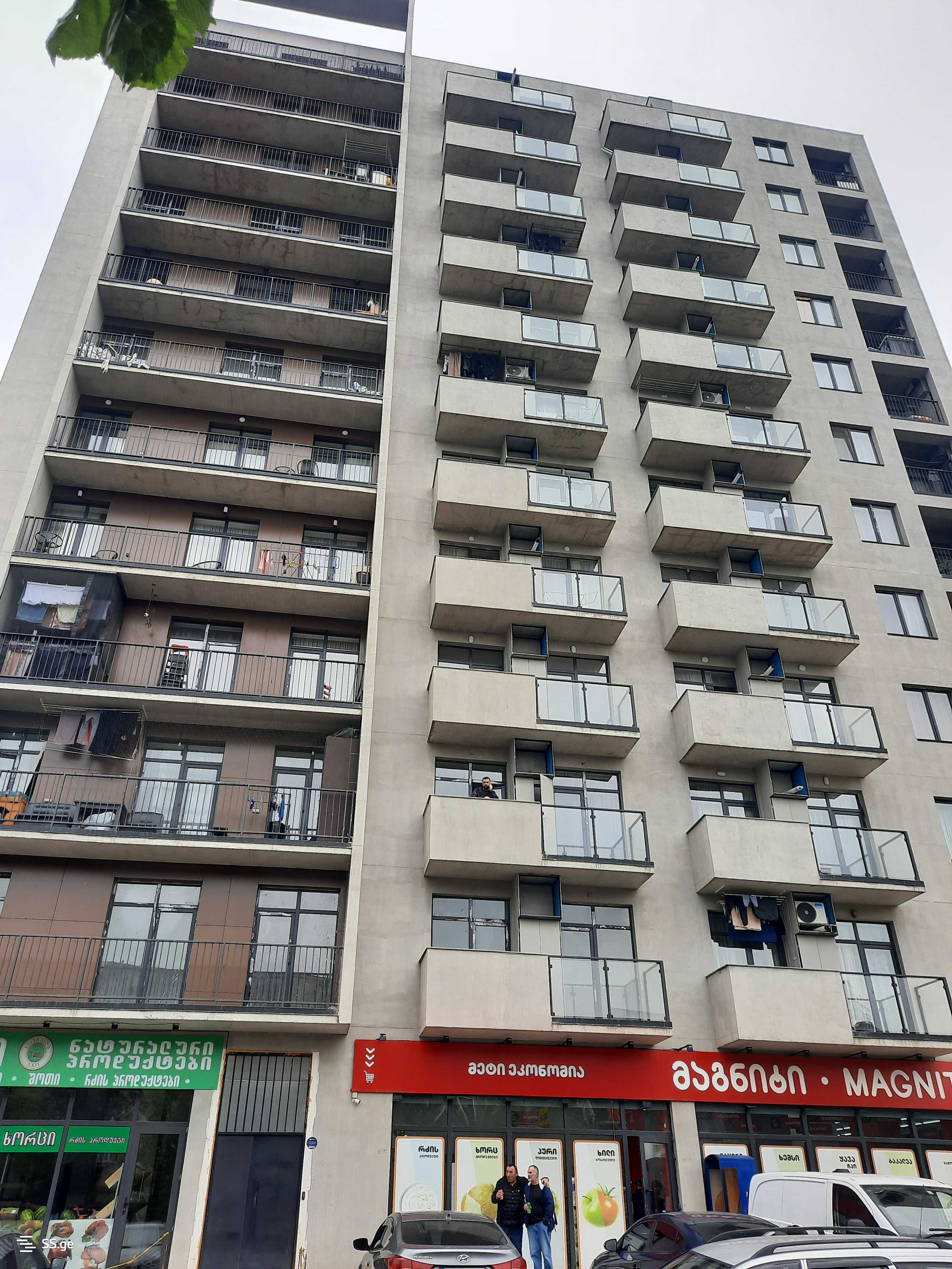 An apartment is for rent in a newly built building, Gldani, Hero Cadets 7, near the Police Academy. It's a 10-minute drive from Akhmeteli Metro station, and a marshrutka runs every 5 minutes. There is a store and a vegetable garden below the building. The price is negotiable.