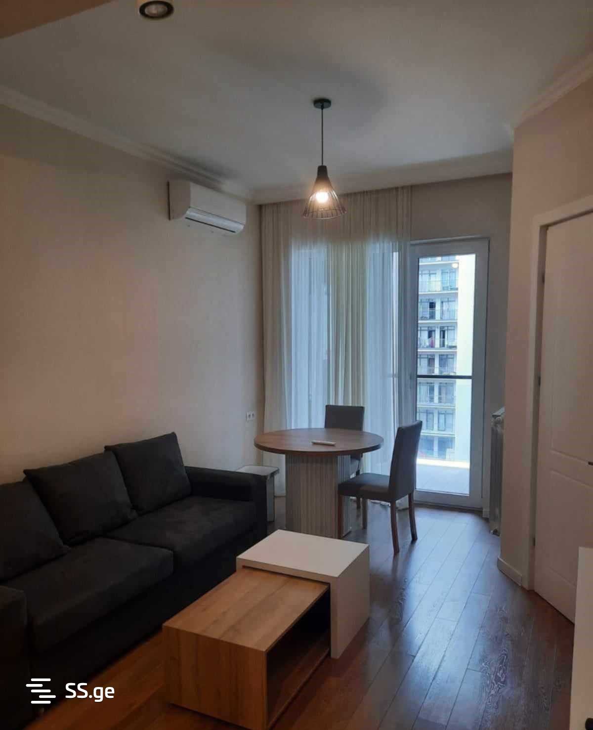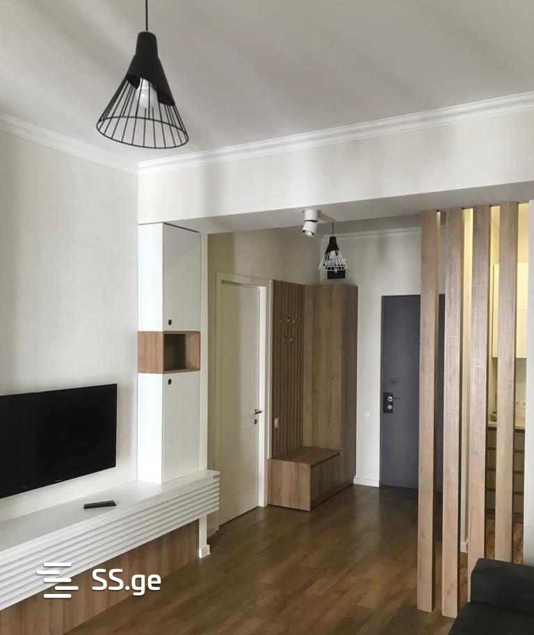 A 2-room furnished apartment is available for rent in the French district of Gldani.