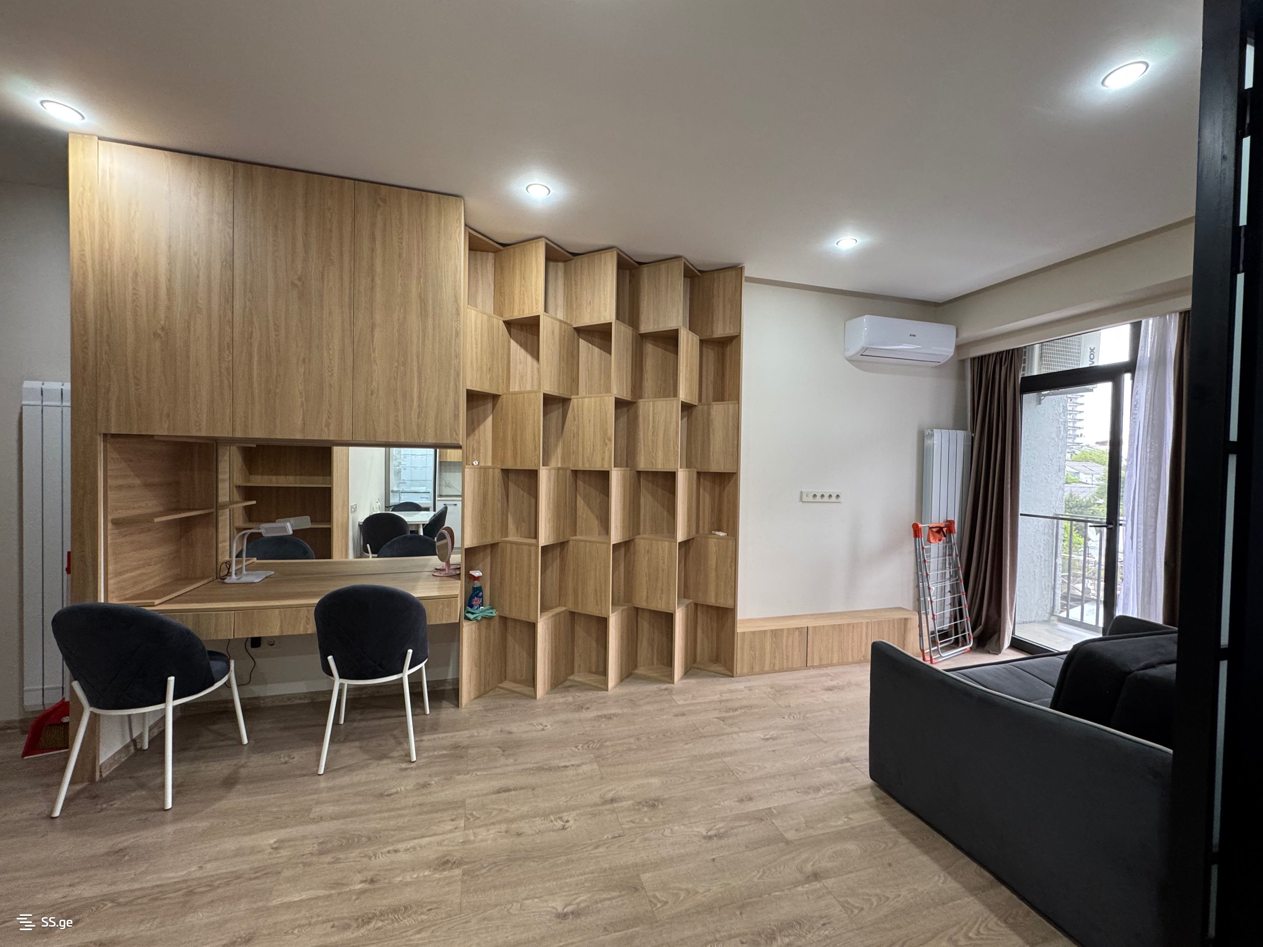 The building is newly constructed and being arranged, there is a video camera installed, the door opens with a code, the apartment is newly renovated, there is a parking lot in the yard.