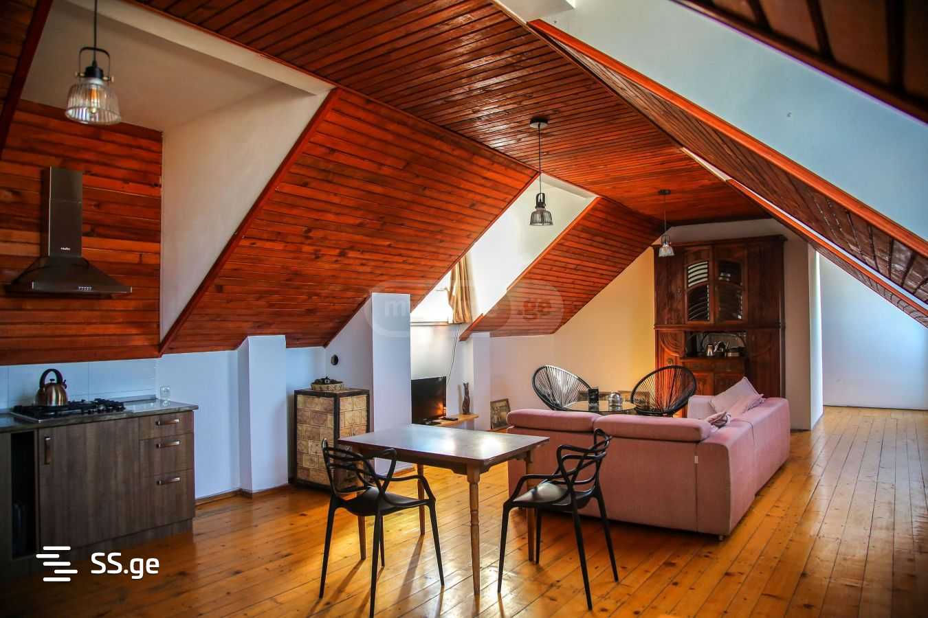 1 bedroom apartment for rent, with a view of old Tbilisi. The apartment has a 35 sq m terrace and a closed balcony, the apartment is equipped with air conditioner, washing machine, microwave oven and other necessary equipment and furniture.