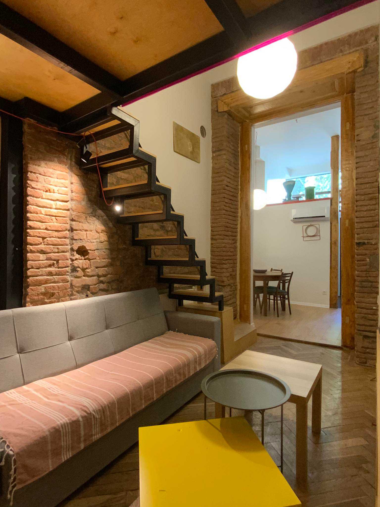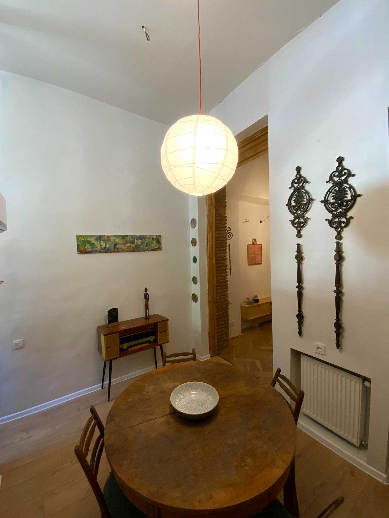 The house is located on a quiet street in a Tbilisi yard, 5 minutes walk from the Liberty metro station. Pets are allowed. The house is equipped with furniture and appliances