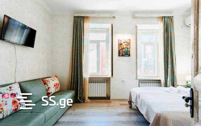 2-roomed 50 sq.m. apartment for rent in Mtatsminda-Sololaki, on Besiki str, on the second floor, renovated, with central heating, air-conditioner, furniture, technique, internet, Tel: 599720772, 597032299 Dali