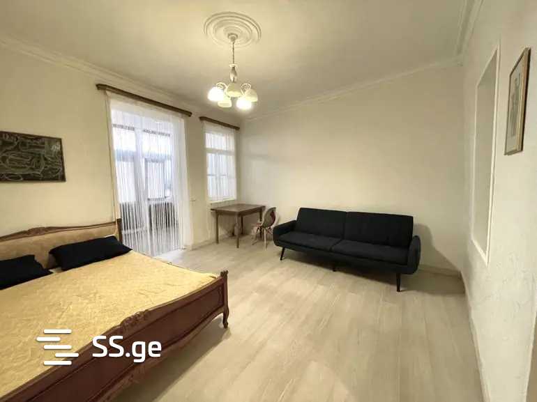 Two-room apartment with a lobby and a wardrobe room (70 sq.m.) is for rent in Mtatsminda (on Kote Meskhi Street) with furniture in a private house section with an individual entrance on the first floor with parking. It is a 5-minute drive from the funicular cable car station, as well as to Rustaveli Avenue, the Opera and Rustaveli theaters, and many museums. The apartment has been recently renovated with its own bathroom, washing machine, kitchen, and is equipped with all necessary items. Prepayment for two months is required.