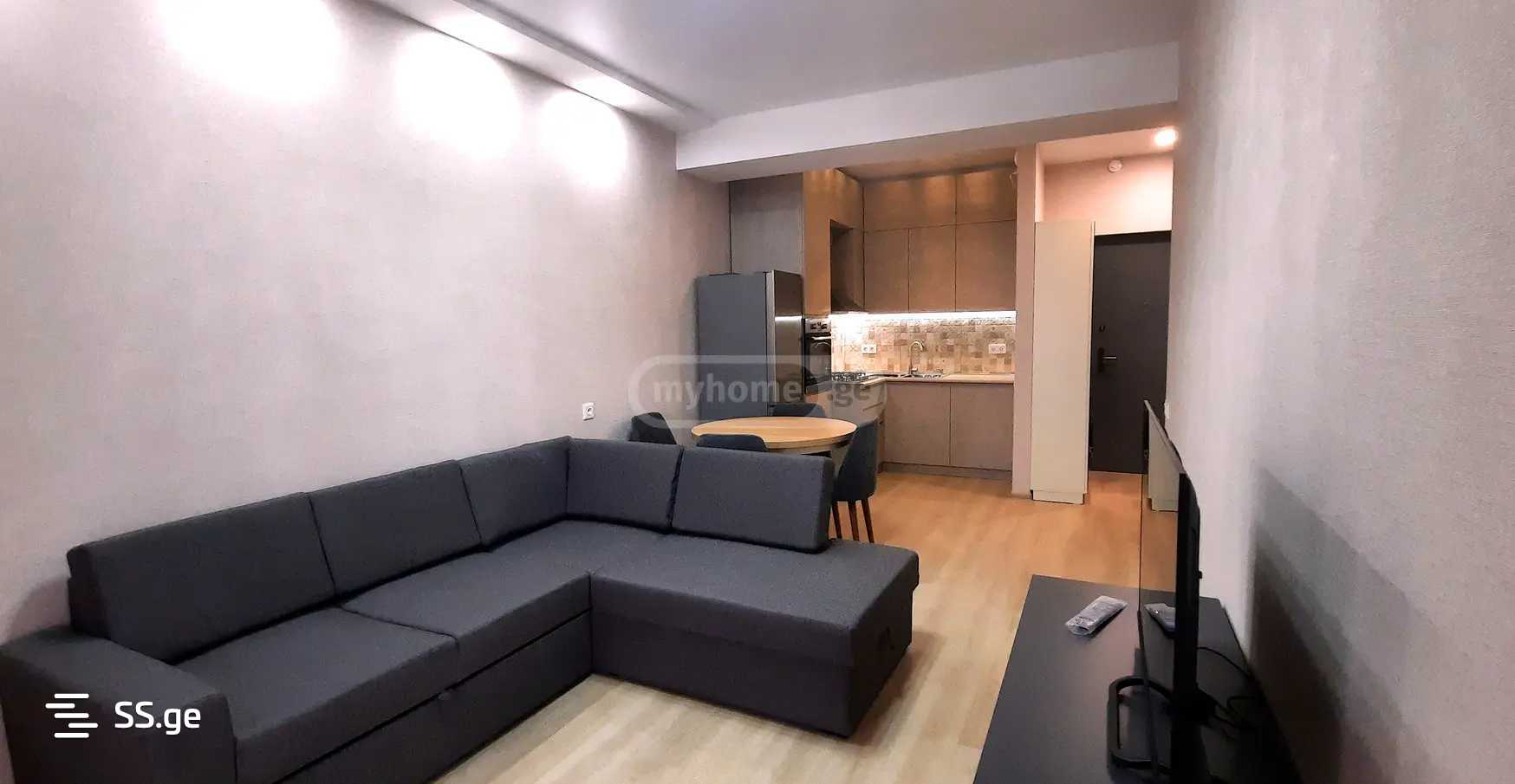 A new renovated (uninhabited) apartment with a garage is for rent in the newly built 'Optima' building, at N2, Mark Bronstein I Lane, Tbilisi, on the 7th floor. The building is serviced by the company 'CityCom'. The apartment is studio type. It has 1 bedroom and one balcony with a table, chairs, and a couch. The bedroom contains a bed with storage and a built-in, large wardrobe. The kitchen is equipped with furniture, a gas stove, an oven, a refrigerator, and cabinets. The apartment has an additional wardrobe for clothes and shoes; central heating. The bathroom has a shower cabin and a washing machine. The apartment is cozy and has a very nice view. The building has a yard for parking. The building is about a 5-minute walk from Akhmeteli Metro, and 2 minutes' walk from Carrefour, which can even be seen from the balcony. Rent for the first and last month is paid in advance.