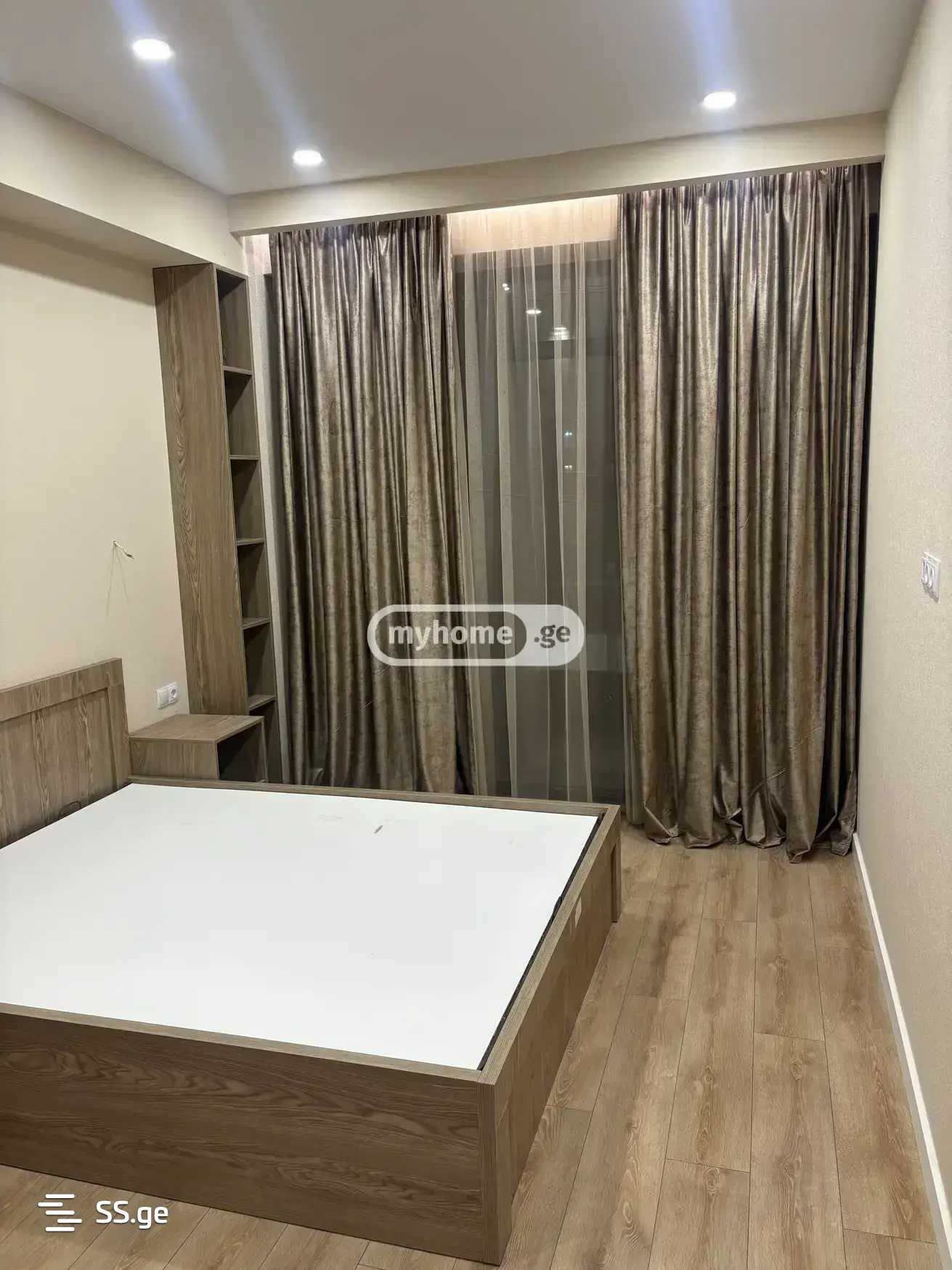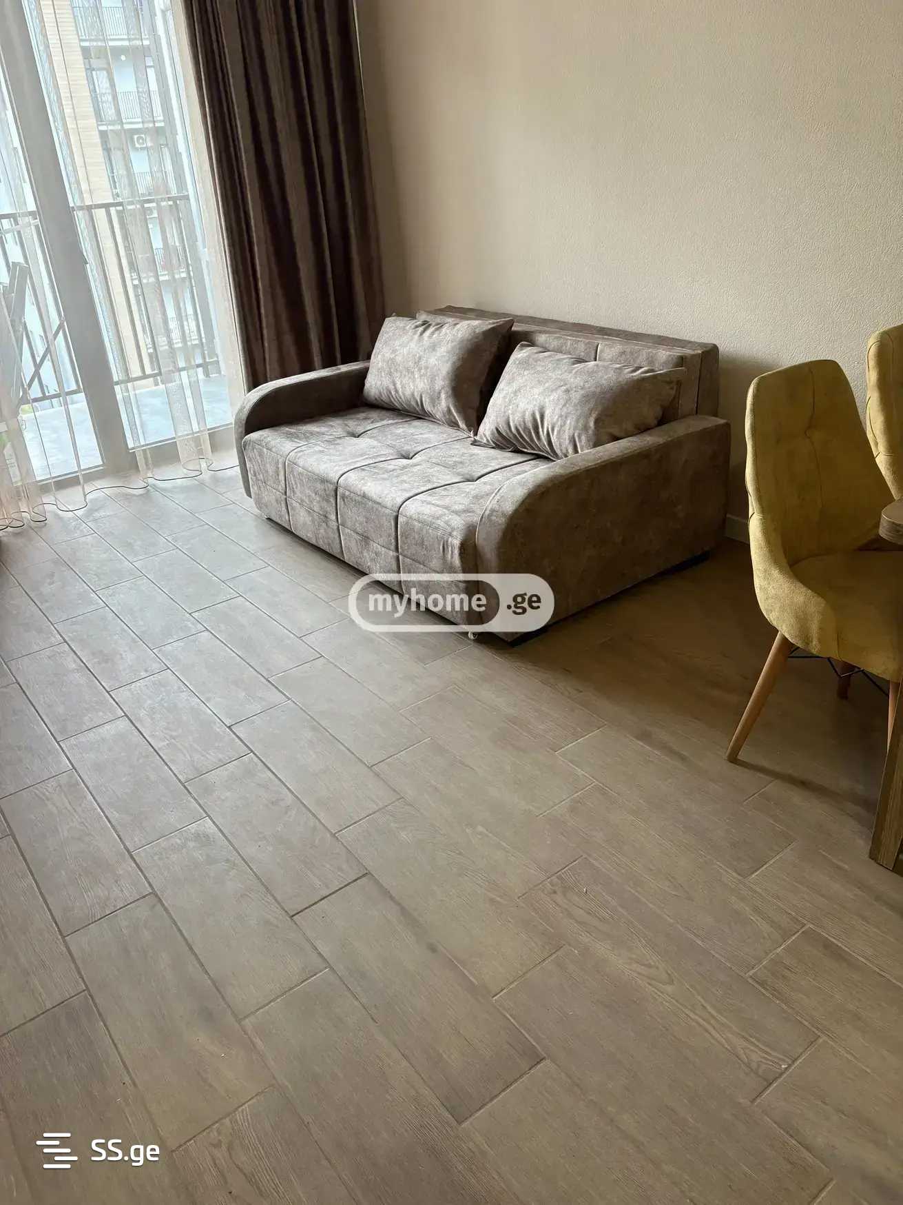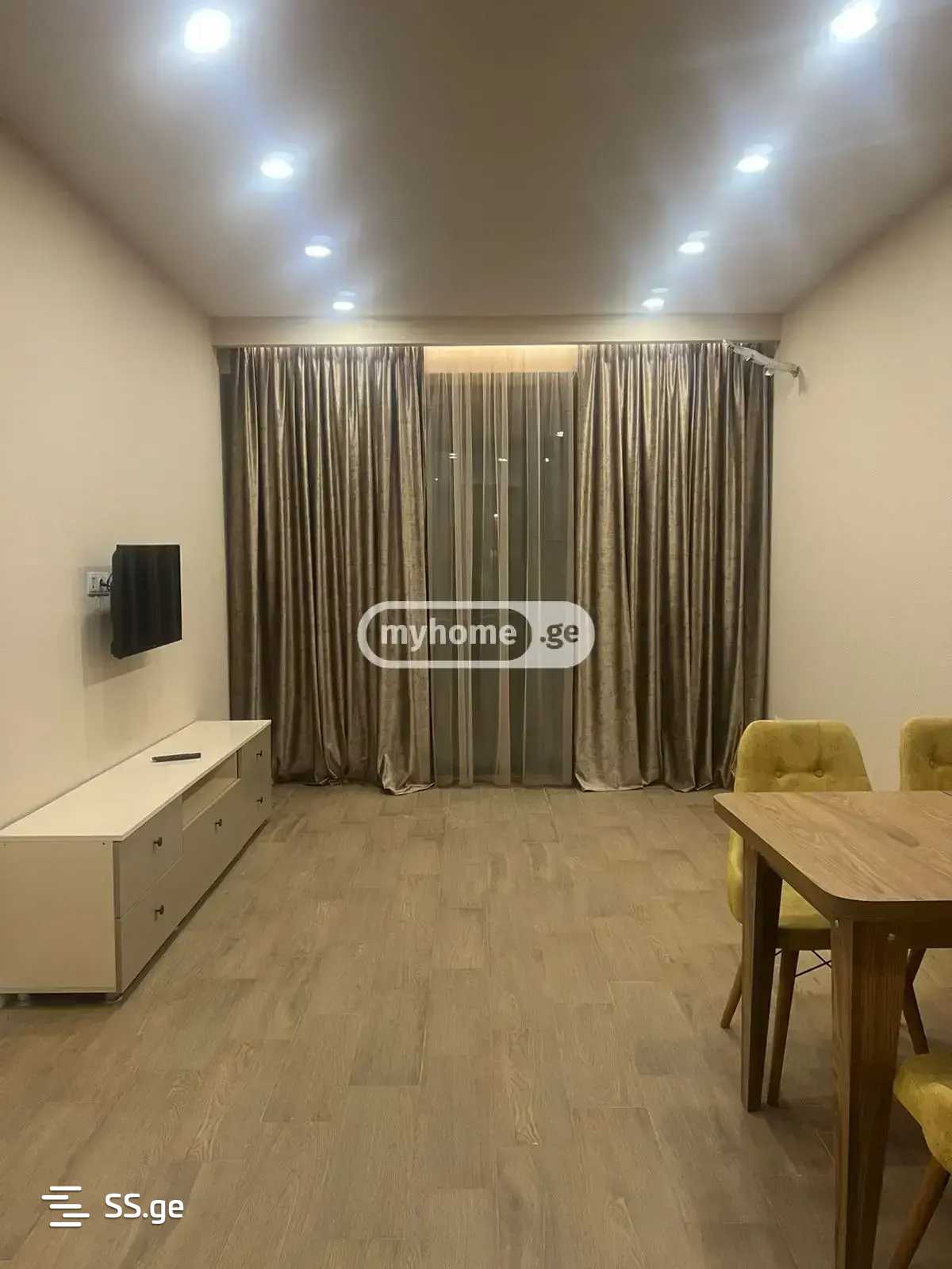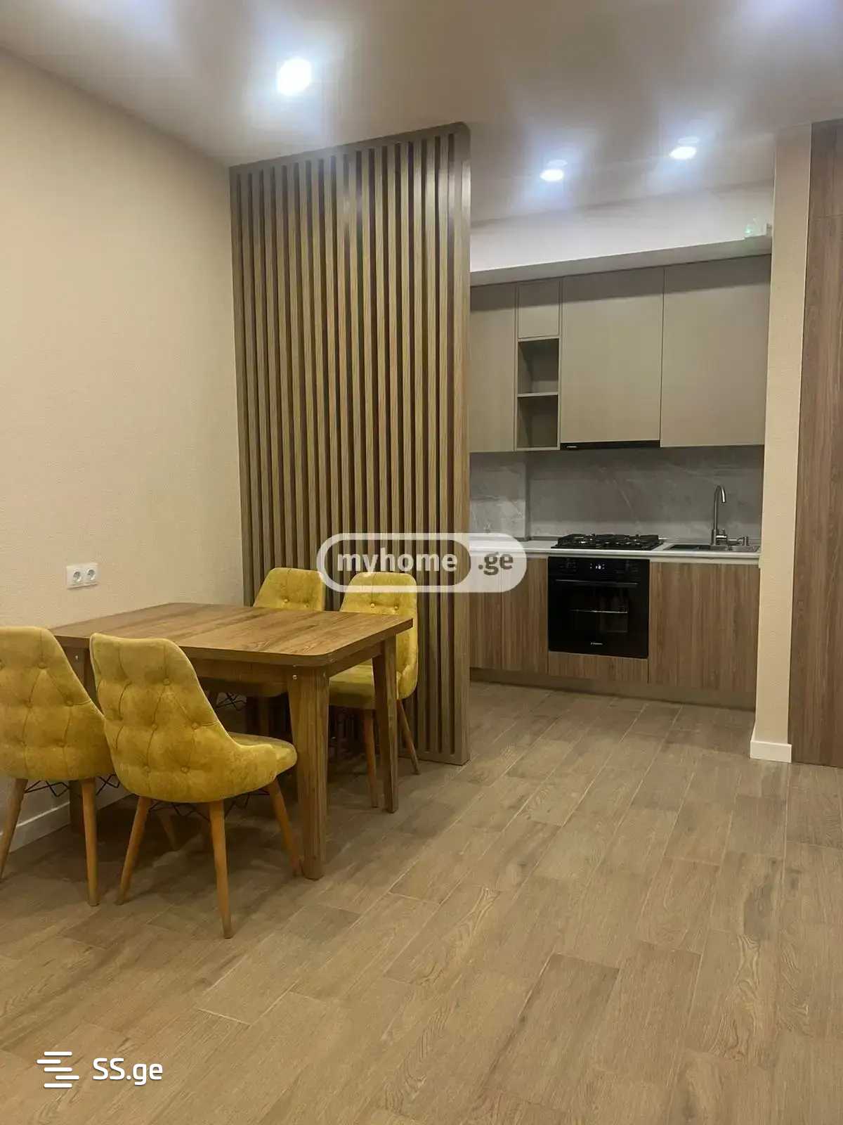 For rent in a newly built apartment, 57 sq.m area near Akhmeteli metro, on the 8th floor of a 12-story building, the apartment is newly renovated, equipped with all necessary furniture and appliances. The first and last month's rent is required in advance.