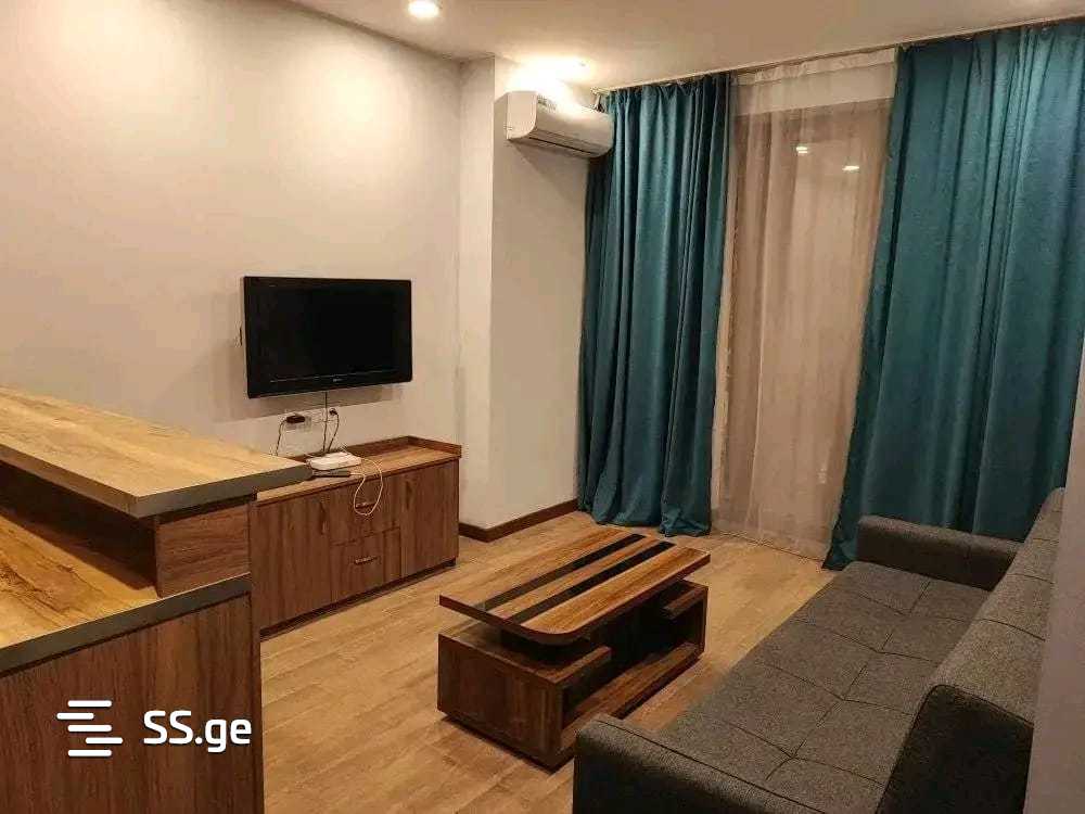 A renovated apartment is for rent with furniture and appliances. Contact me at the number in the Kikvidze Park at the Alpha building.