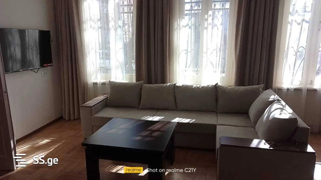 ქირავდება 2 ოთახიანი სტუდიის ტიპის ბინა. კერძო სახლში. მაღალი ბელეტაჟი, ჭერი 3.20 სმ , ბინას ყველაფერი აქვს დამოუკიდებელი. 2 მანქანის ადგილი