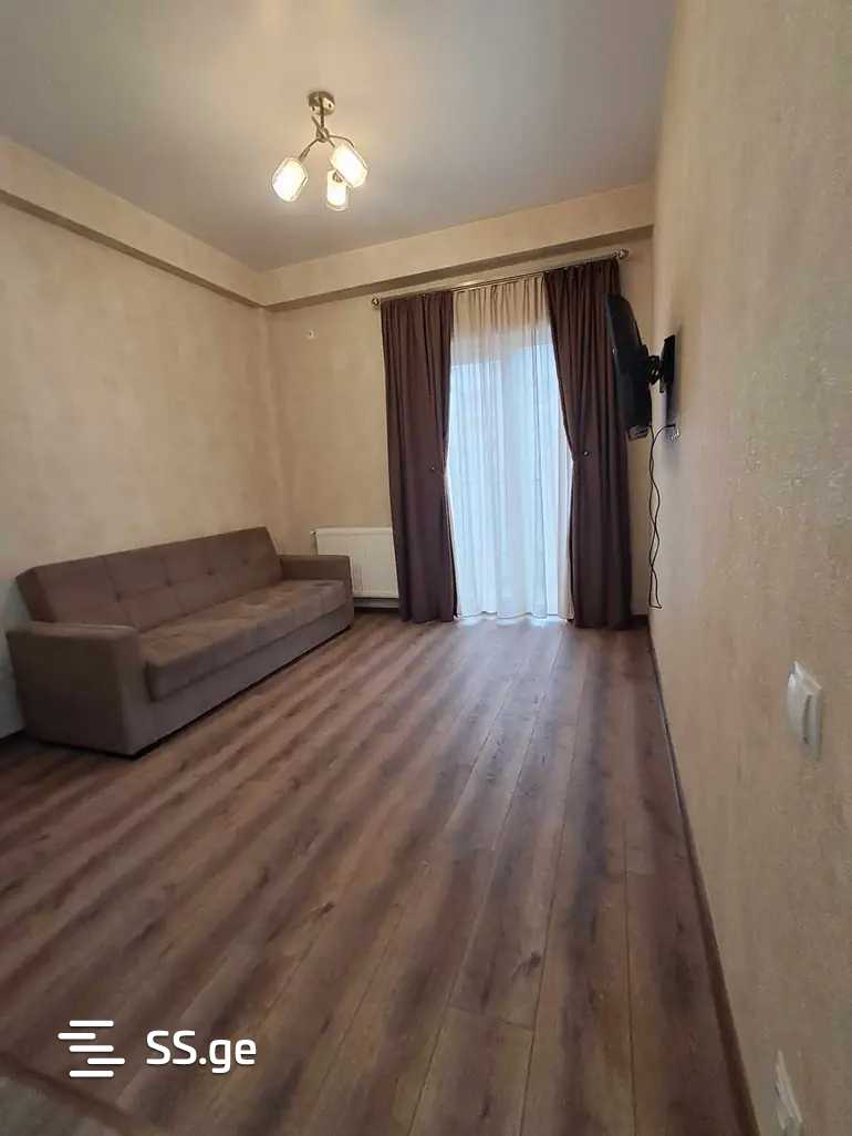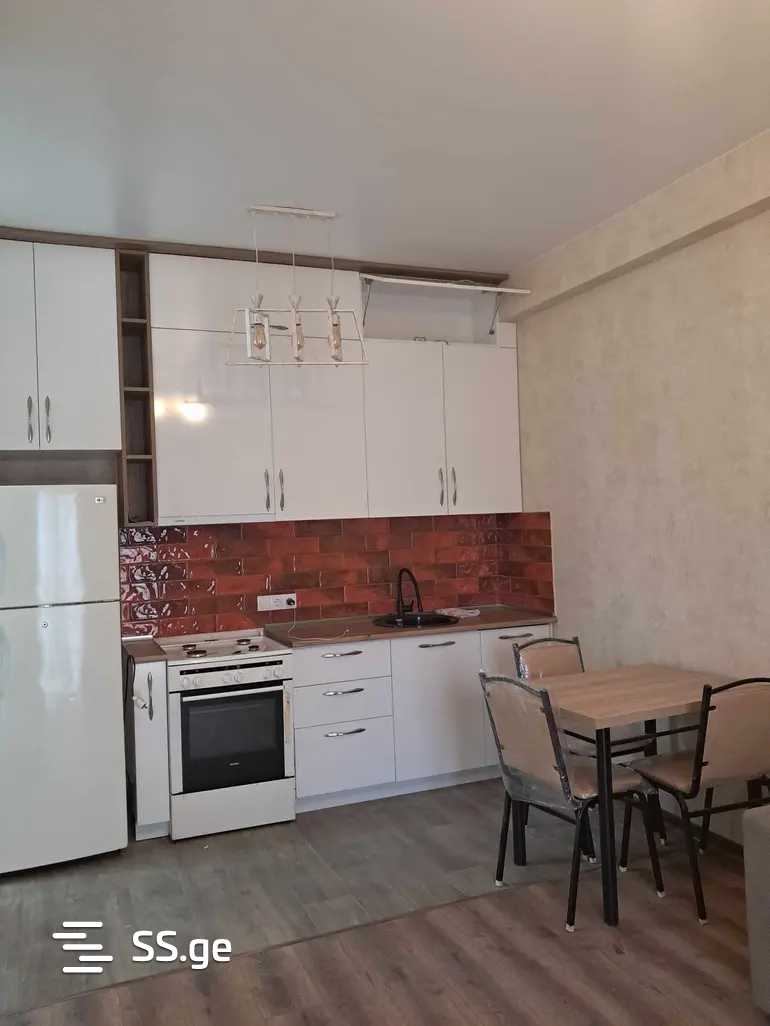 For rent for 1 year, a newly built, renovated, uninhabited apartment with equipment and furniture on Chkhondideli Street in the m2 residential complex. On the 8th floor of a 10-story building.