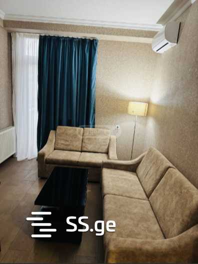 For rent is a 2-room apartment in Nazaladzevi, 55 sq.m., near the metro station Gotsiridze on Zestafoni Street, with central heating, furniture, and appliances. Price 1400 lari. Phone 592688866, 555688866.