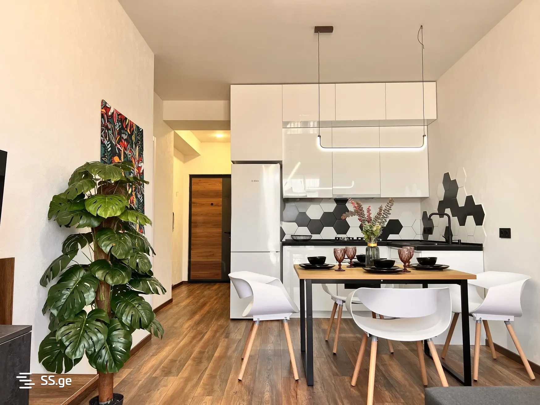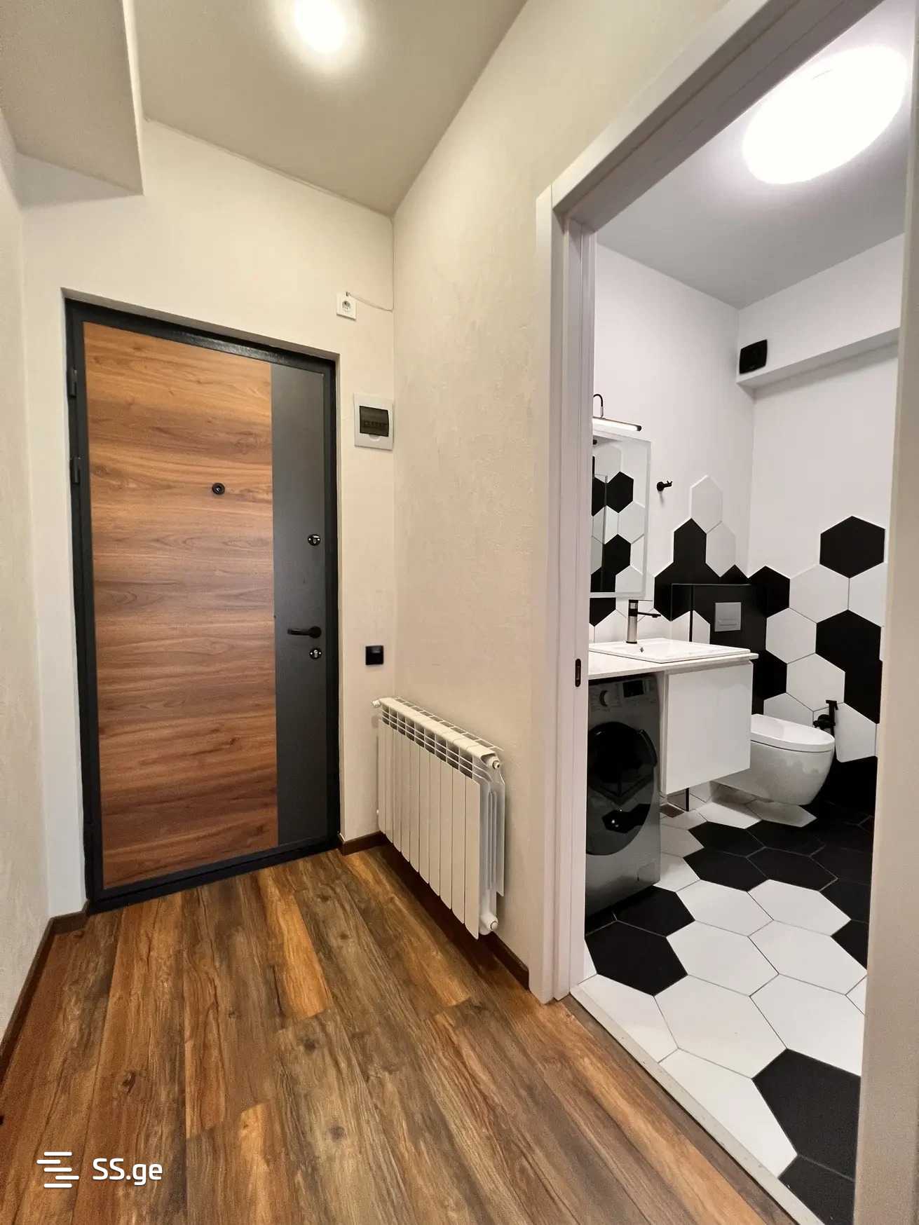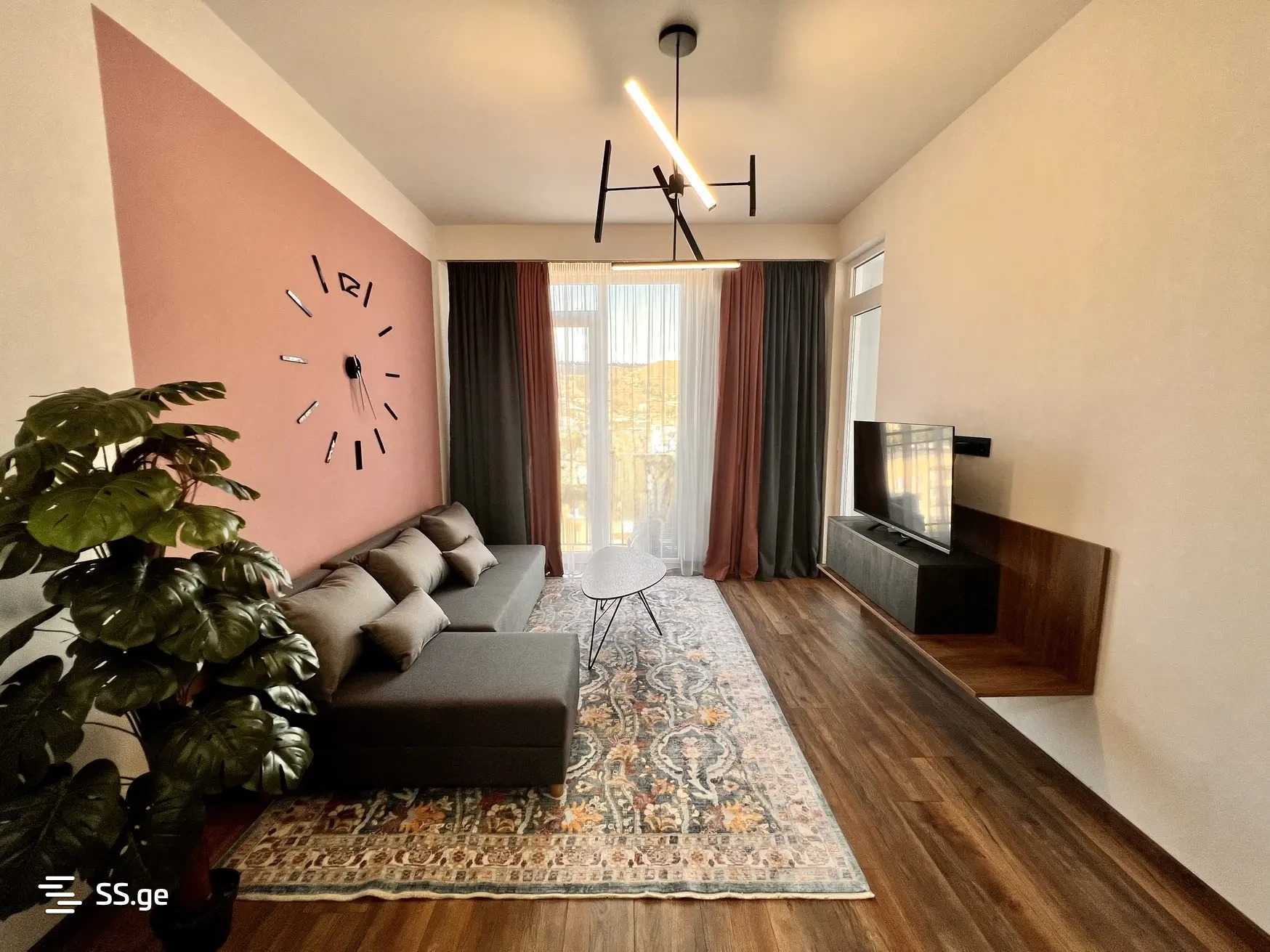 The interior is designed by a designer, made with high-quality materials. The kitchen is fully equipped with appliances. It is located near the Didube metro station, adjacent to the shopping center Saba.