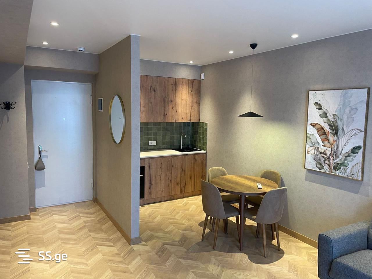New apartment with good renovation in the new residential complex Monolit Green City in Krtsanisi 2 rooms 1 bedroom 1 bathroom Fully equipped with all necessary furniture and appliances: Refrigerator, oven, washing machine, air conditioner, folding sofa, extra storage!