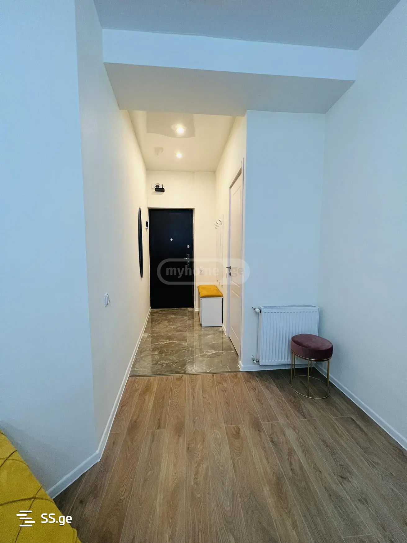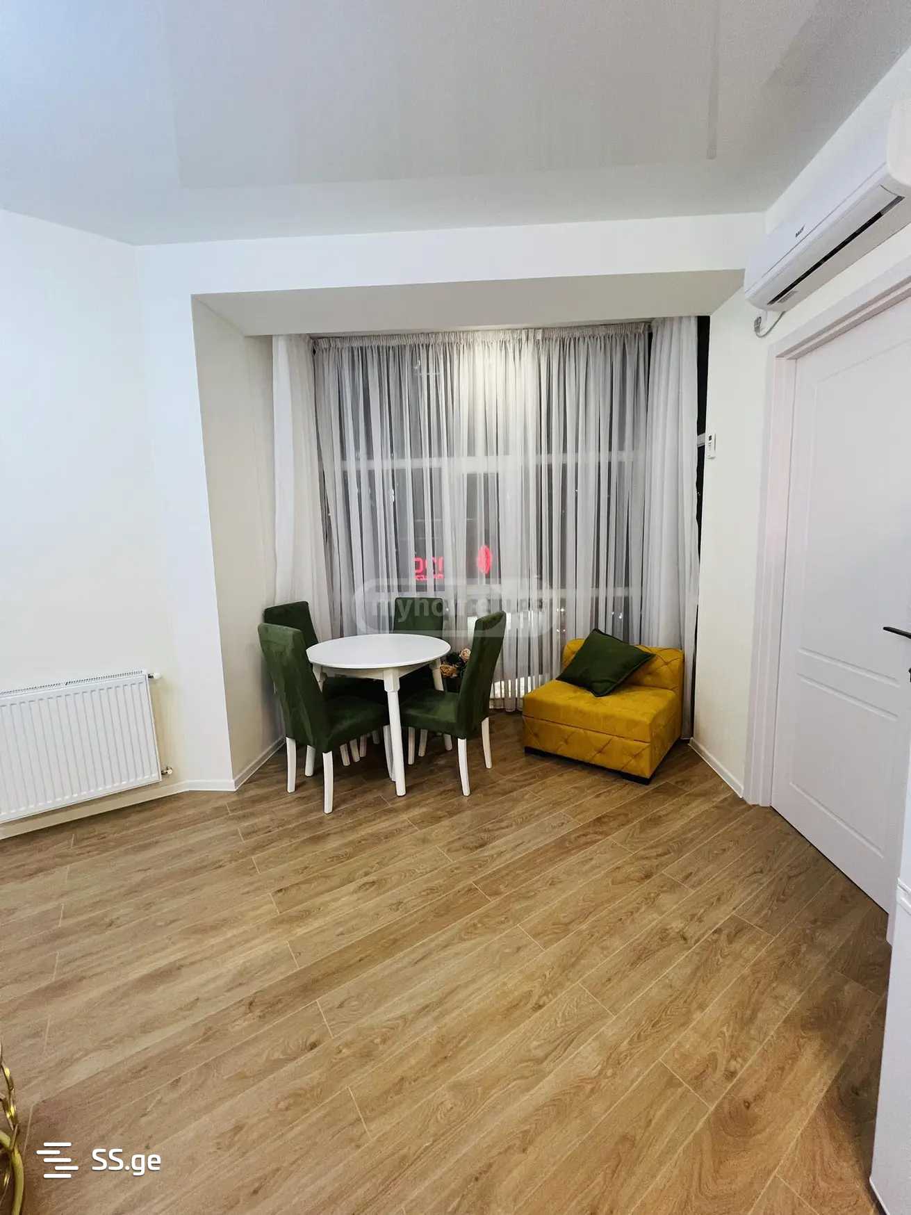 Just in front of City Mall, on Kazbegi Street, in a newly built building, a well-furnished, newly renovated 2-room apartment with 1 bedroom, a balcony and all the necessary furniture is for rent. The apartment is equipped with central heating, air conditioner, refrigerator, washing machine, microwave, etc. The apartment has all the things needed for the kitchen. The entrance is protected