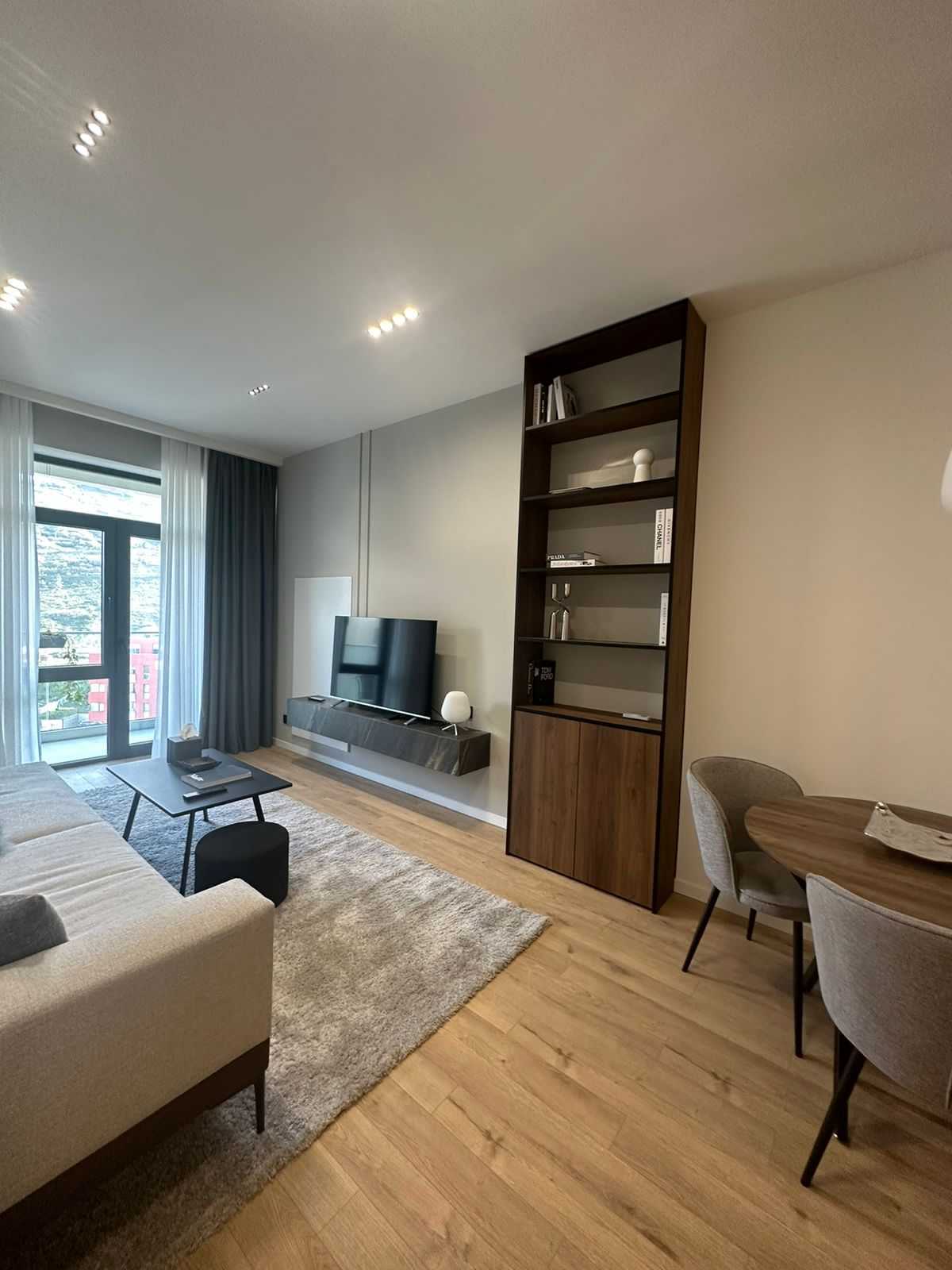 Cozy two-room apartment for rent in Arkturi building. The apartment is fully furnished. Central heating, cooling system and television are installed. The bedroom has a walk-in closet.