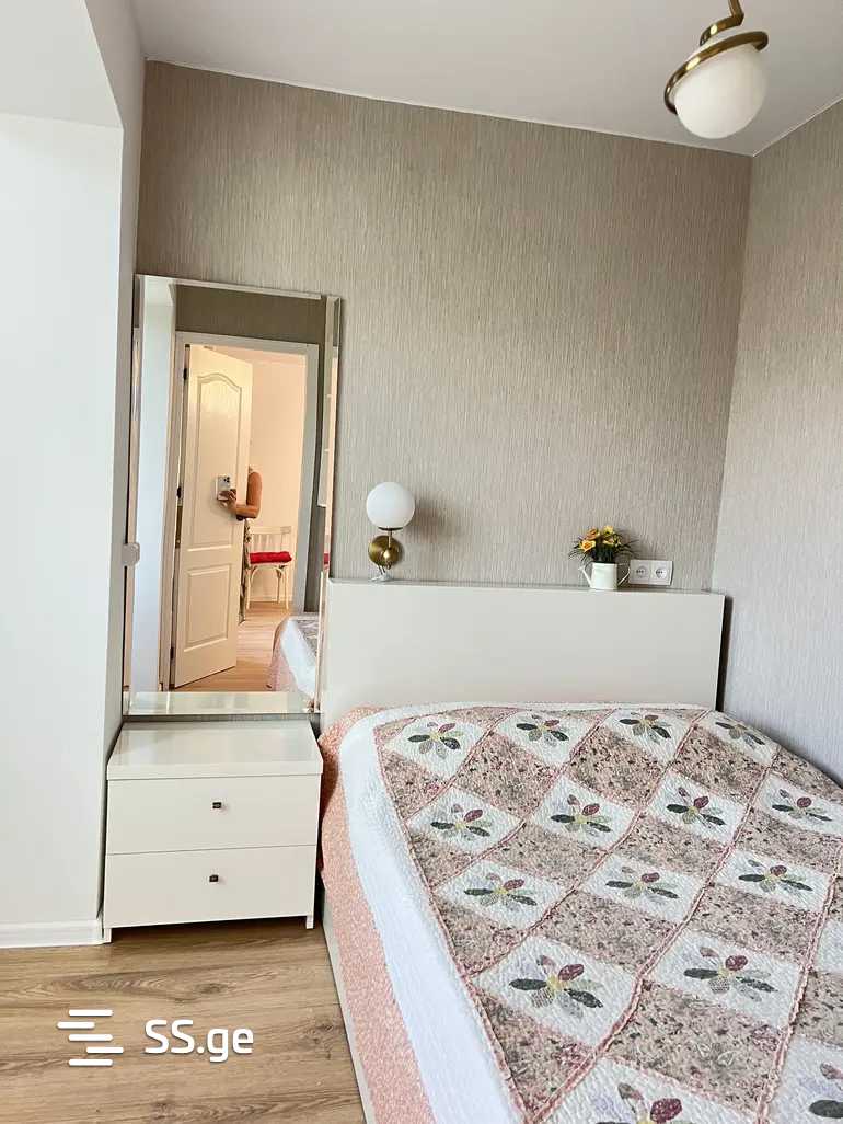 For rent in Vaja, near Delisi metro station, a newly renovated, unoccupied apartment on the 5th floor, with a balcony, a separate bedroom, central heating, hot natural sulfur water, new furniture and appliances, storage on the balcony.