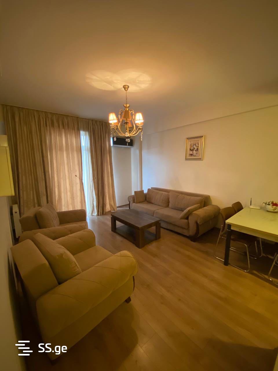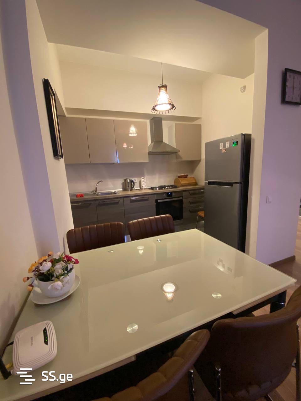 For rent in Saburtalo, on Alekseyt Qazbegi Avenue, in building M2, a two-room studio, 65 sq.m apartment. With furniture and appliances. Near the park. With views. Price 800$