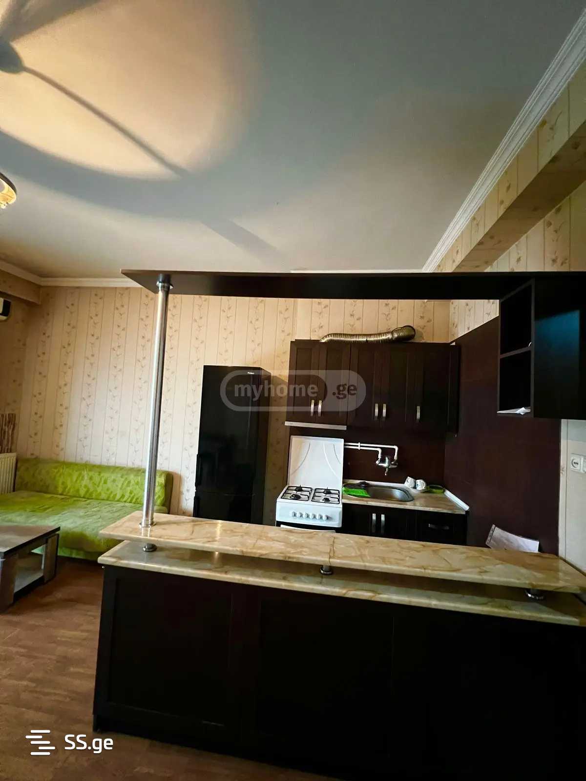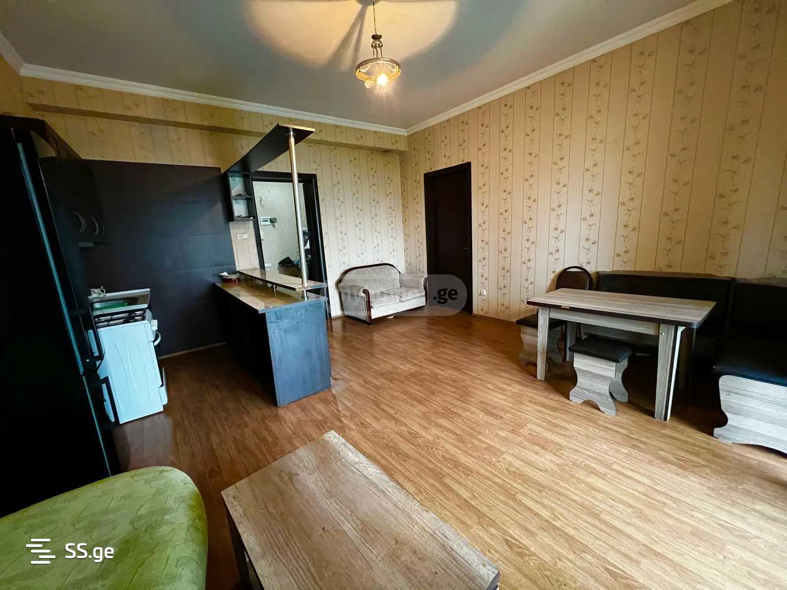 A newly renovated furnished apartment is available for rent on Kazbegi Avenue, in the Aksis building, with a total area of 75 sq/m, a large bedroom, a living studio, a large balcony, a living room, and a wet room. The price is $500 with two months' payment.