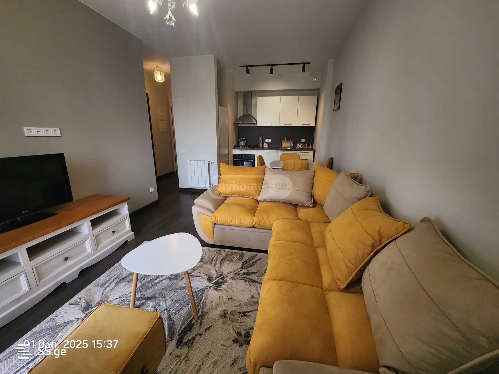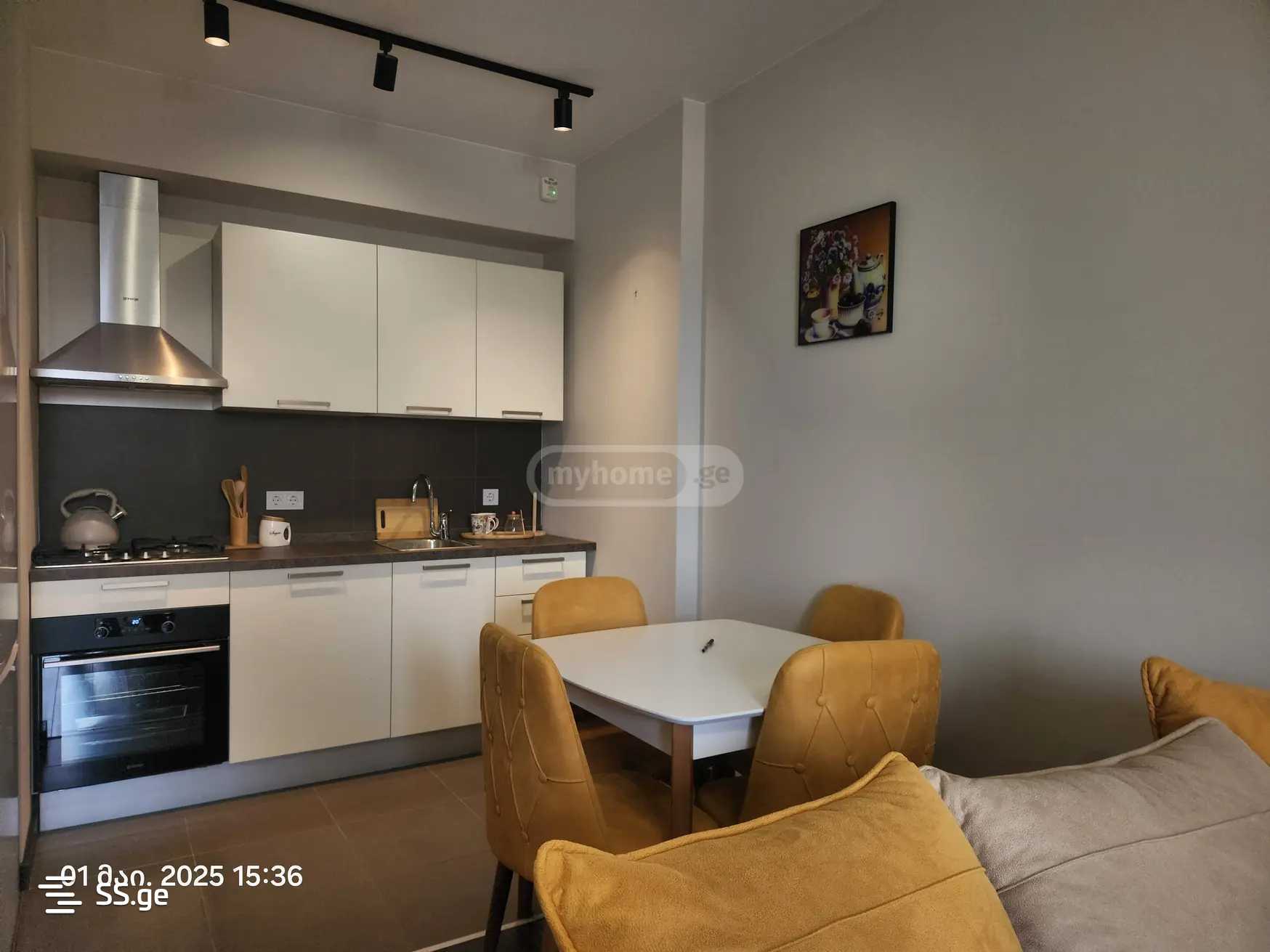 Exclusively for rent is an apartment at Marshal Gelovani 1 in the M² complex. The apartment is uninhabited, everything is clean and new. The apartment is on the 8th floor and has a beautiful view of the city. The apartment has everything you might need for living. It has a dishwasher, air conditioner, television, a washing machine, and other high-quality appliances.