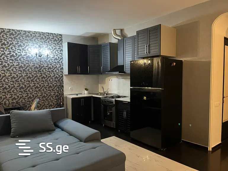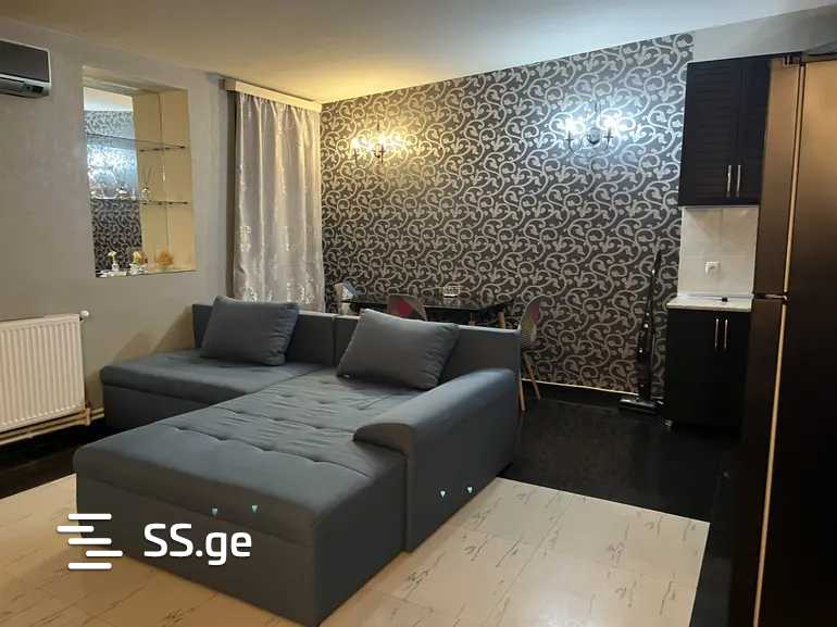 Apartment for rent on Vazha-Pshavela, with 1 bedroom. Studio-type living room, bedroom, bathroom, 7 sq.m. office and 12 sq.m. balcony. Advance payment for the first and last month.