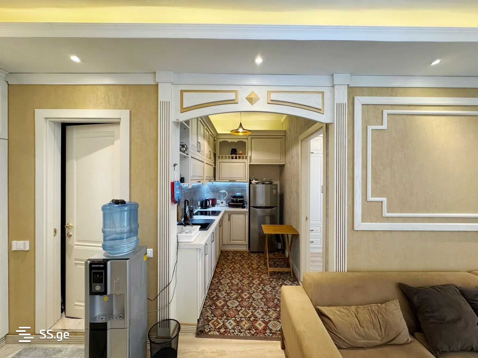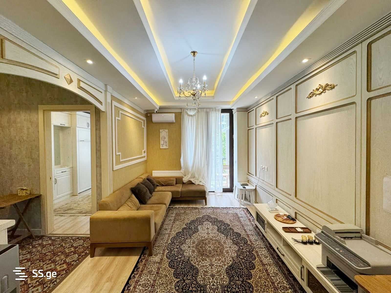 For rent: 2-room apartment with renovation in Saburtalo, on Burjglas Street, in a newly built house, 50 sq.m, on the 4th (9th) floor, with furniture and appliances, balcony, air conditioning.