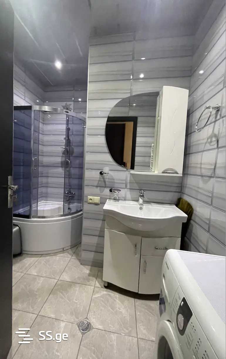 A newly built 2-room apartment is for rent at 6 Givi Kartozia Street. The rooms are bright and renovated with their own appliances. The balcony has a view of the racetrack. Ideal location (there are supermarkets below the house, and the bus stop is about 5 minutes away, there is a park and a play area beside the building). Two months payment in advance.