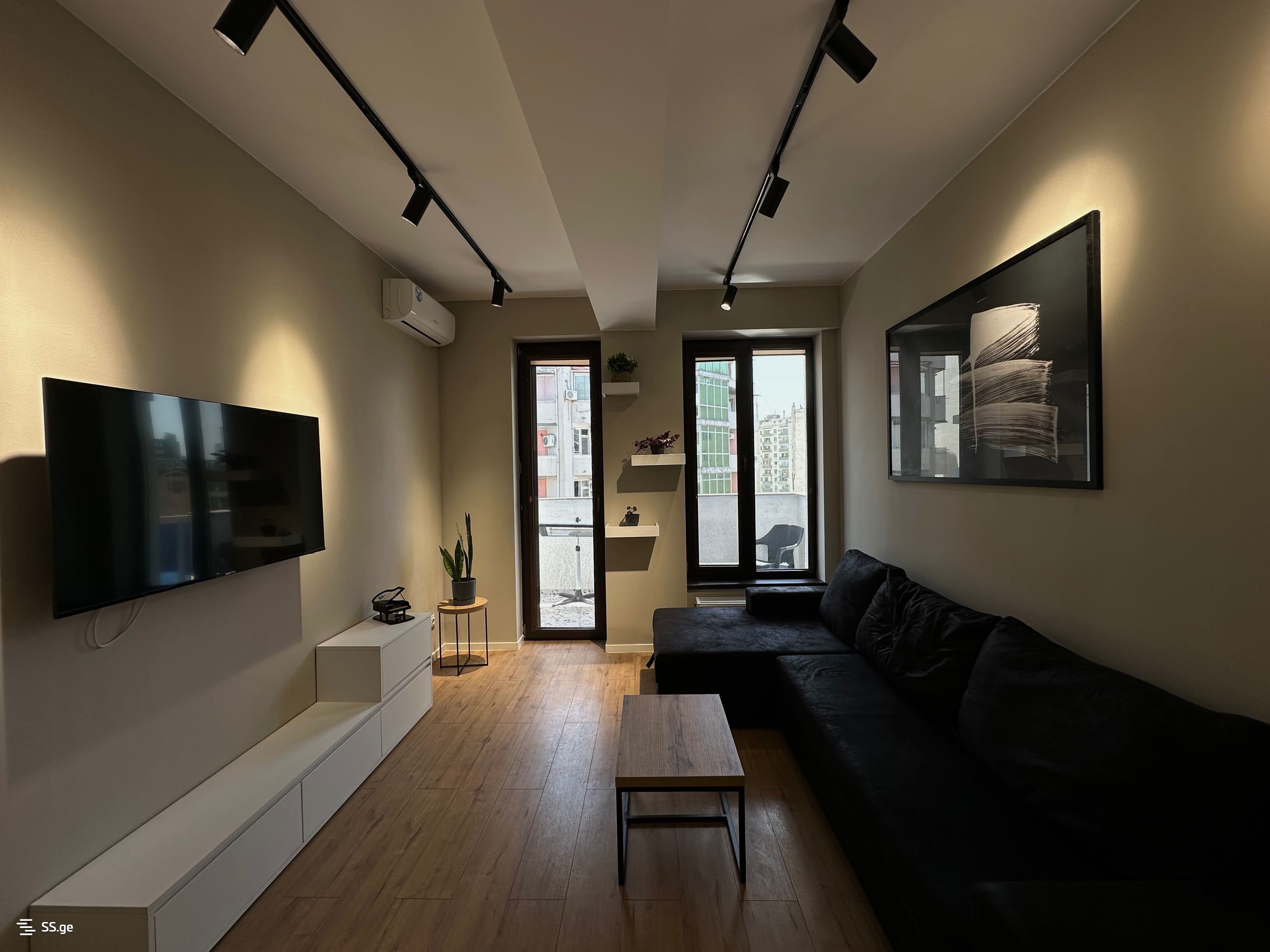 A cozy and comfortable apartment in Saburtalo, on Gagarin Street. The living space is designed in a minimalist style and equipped with brand-new appliances. The apartment features two air conditioners, a dishwasher, a built-in refrigerator, and all the necessary household equipment.
