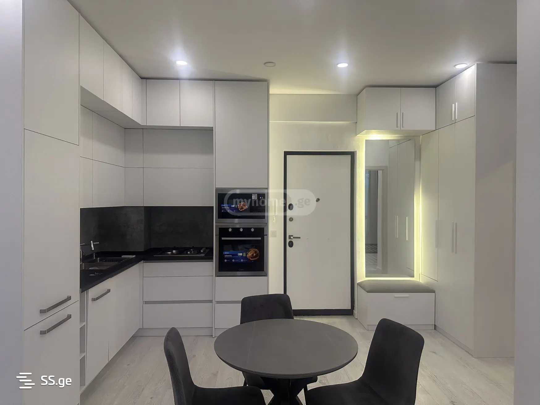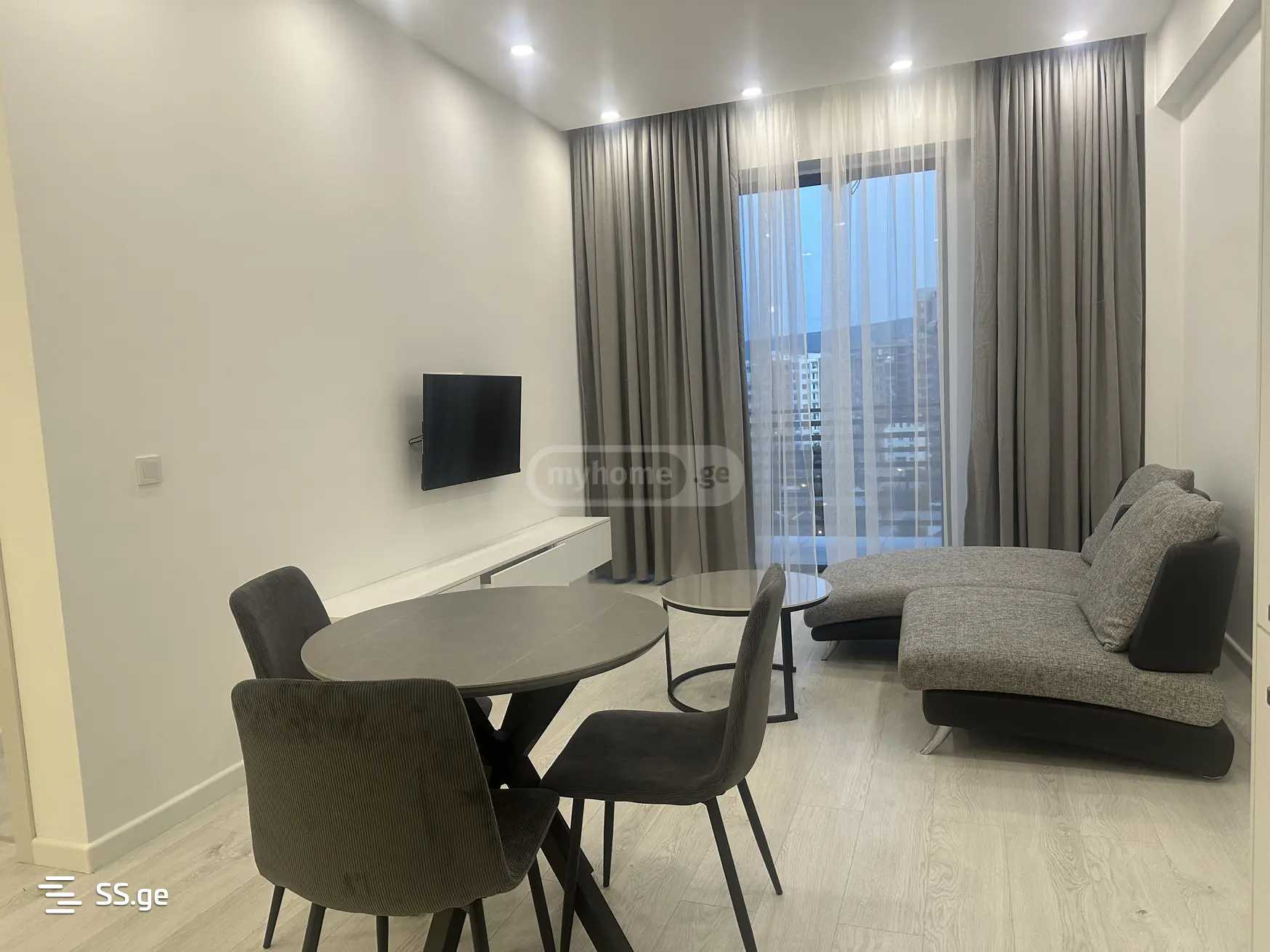 For rent in a newly built building, an apartment equipped with furniture and appliances. All types of institutions are nearby.