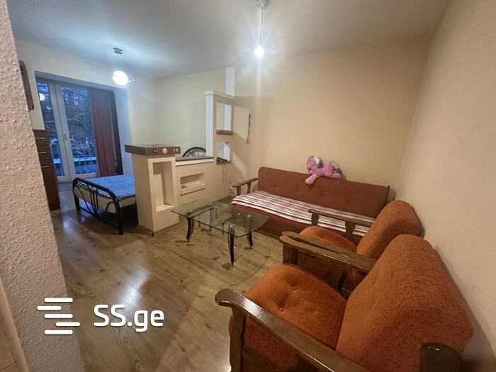The mentioned building is located near Vazha-Pshavela metro station. Standard 1-room apartment with a French balcony, view towards the street. A roadside building. Pets are not allowed in the apartment.