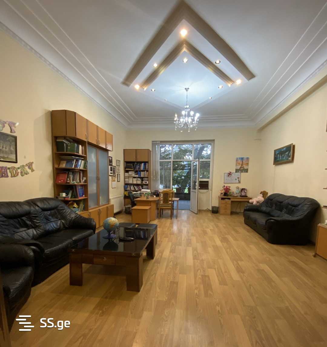From the owner - for rent in the center of Saburtalo, renovated space of 200 sq.m.. 4 rooms, 1 isolated kitchen; 2 bathrooms; 1 large corridor; A large balcony-veranda overlooking Heroes' Square (with a beautiful view). high ceiling. with central heating. Internet and television. Entrance from 2 sides, from the street and from the yard. Prestigious entrance with stairs covered with marble. 24 sq.m. garage, as well as parking in the yard. Yard with barrier. (there is a bus stop in front of the building, as well as an underground passage on the opposite side).
