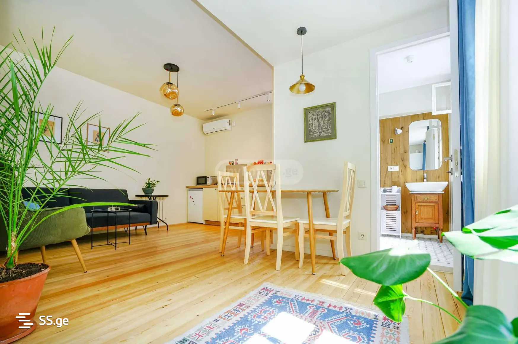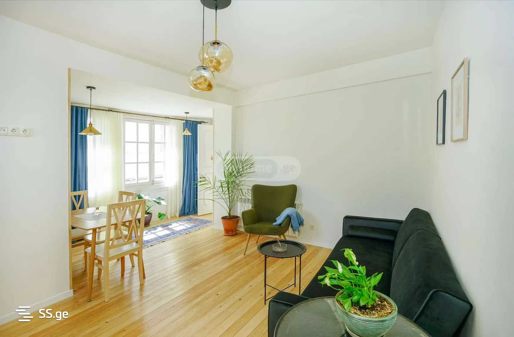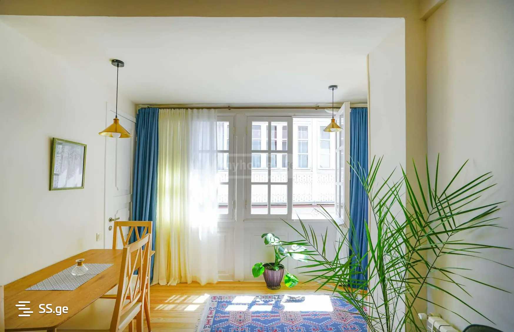 The apartment is located on a beautiful renovated street, with views of the whole of Tbilisi. The bedroom is isolated, the apartment has the necessary appliances and furniture. It also has a cozy yard. I can send you a video of the apartment!