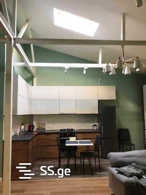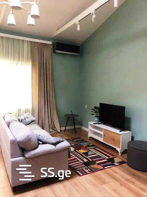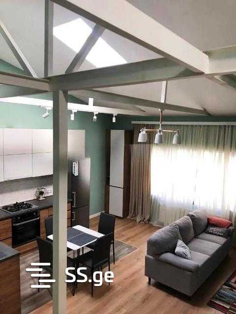 2-roomed 65 sq.m. apartment for rent in Vake, on Napareuli str, in new building, on the 4th floor, with mezzanine, newly renovated, with central heating, air-conditioner, furniture, technique, dishwasher, internet, balcony, parking place