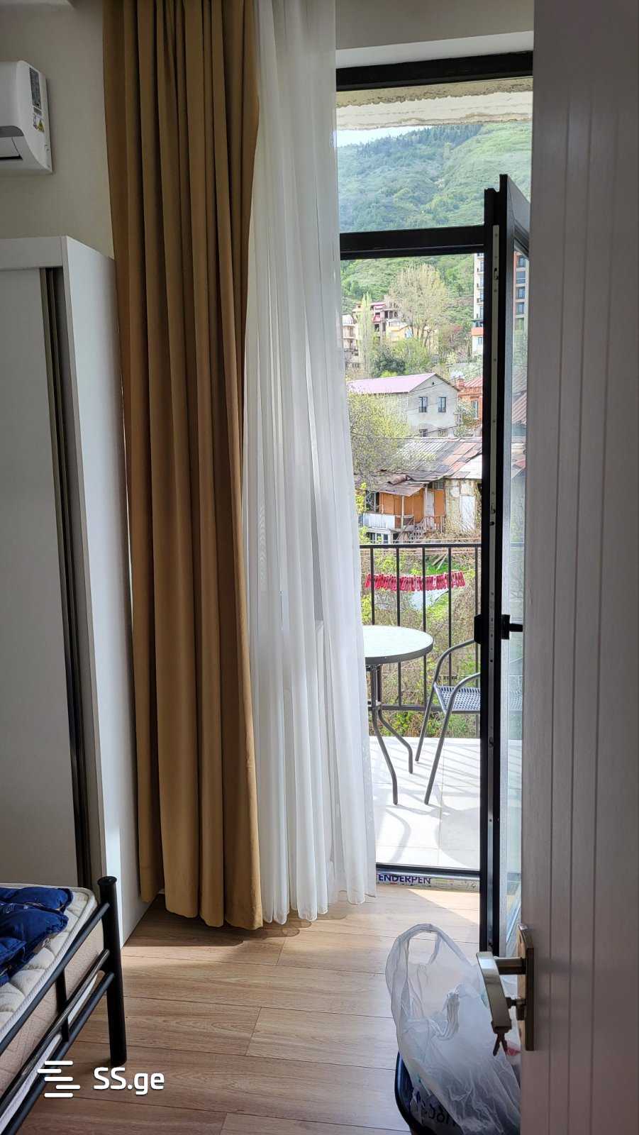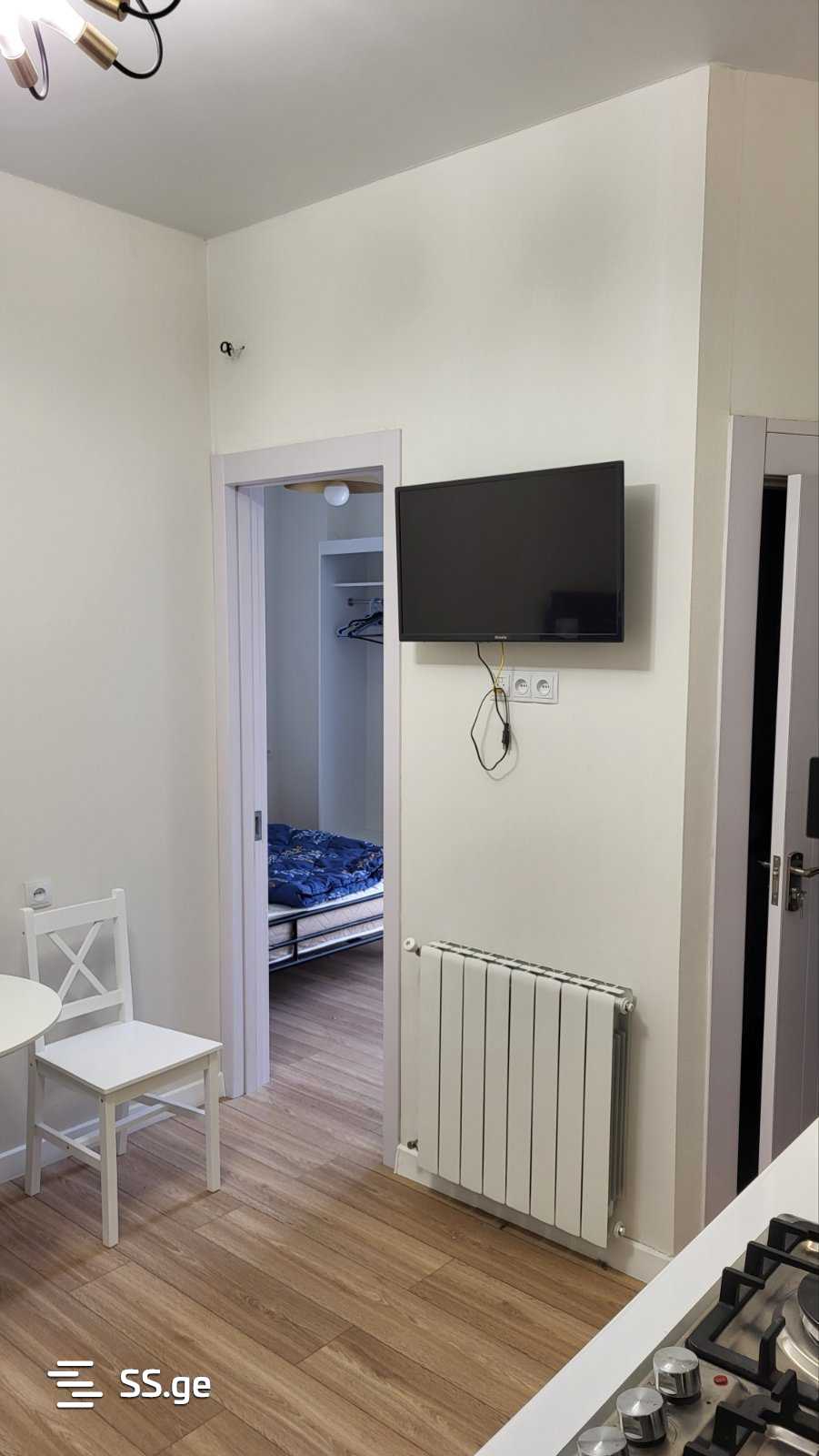 The apartment is available from May 5. A comfortable apartment of 33 sq.m for rent in Vake, 10 Zhvania Street. 11th floor, studio-type, 1 bedroom. With a balcony view towards Mtatsminda. Furnished, with appliances and internet.