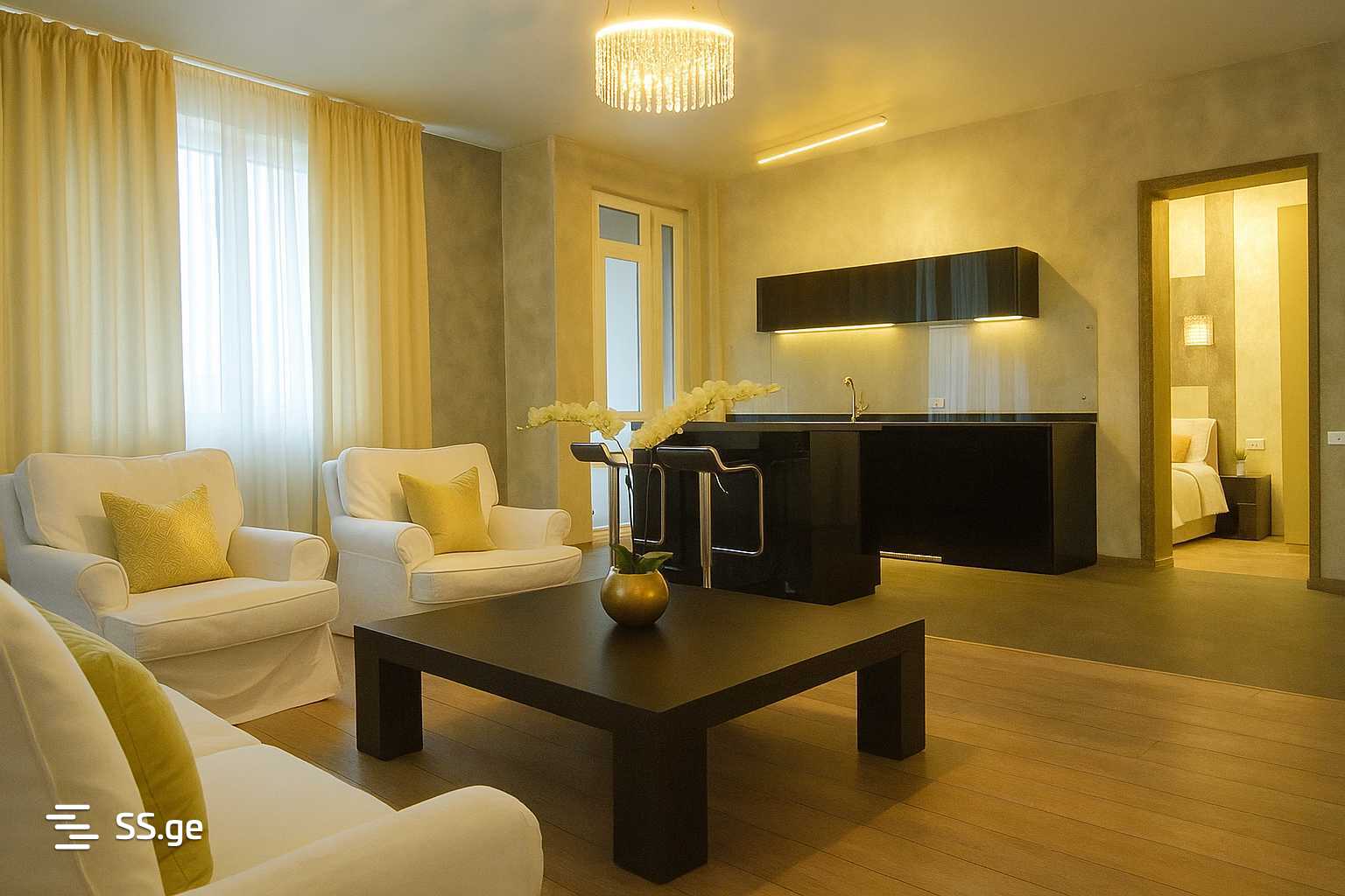 I don't cooperate with agencies! For rent in the most prestigious location in Tbilisi, on Barnovi Street, a newly renovated and newly equipped very large and very bright 2-room (89 sq/m) Euro-renovated apartment in Vake, in the most prestigious place in Tbilisi and in the most prestigious building, in a newly built elite beautiful house, with a beautiful view of Mtatsminda and Father David, the apartment has new furniture from Italy and new appliances, the apartment was renovated by the most famous designer in Georgia, the apartment has beautiful plants orchids, the apartment has a beautiful veranda with stunning views of Mtatsminda and the funicular, jacuzzi, central heating and security system, strong Wi-Fi, the apartment is located 300 meters from the Rooms Hotel and the publishing house, the building has security, intercom.